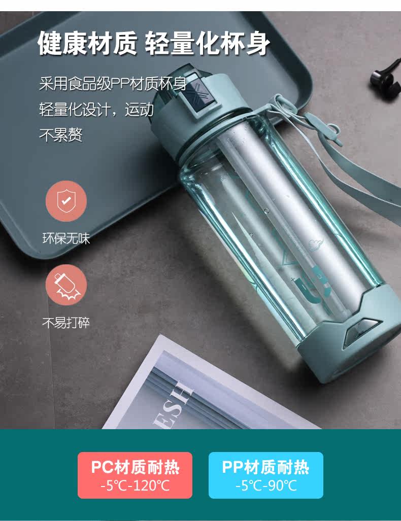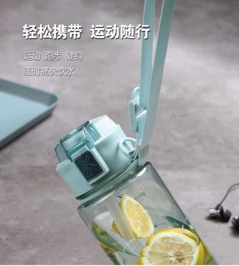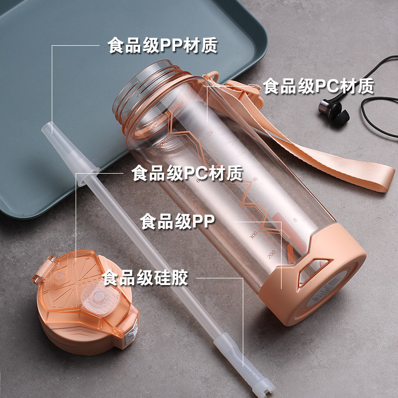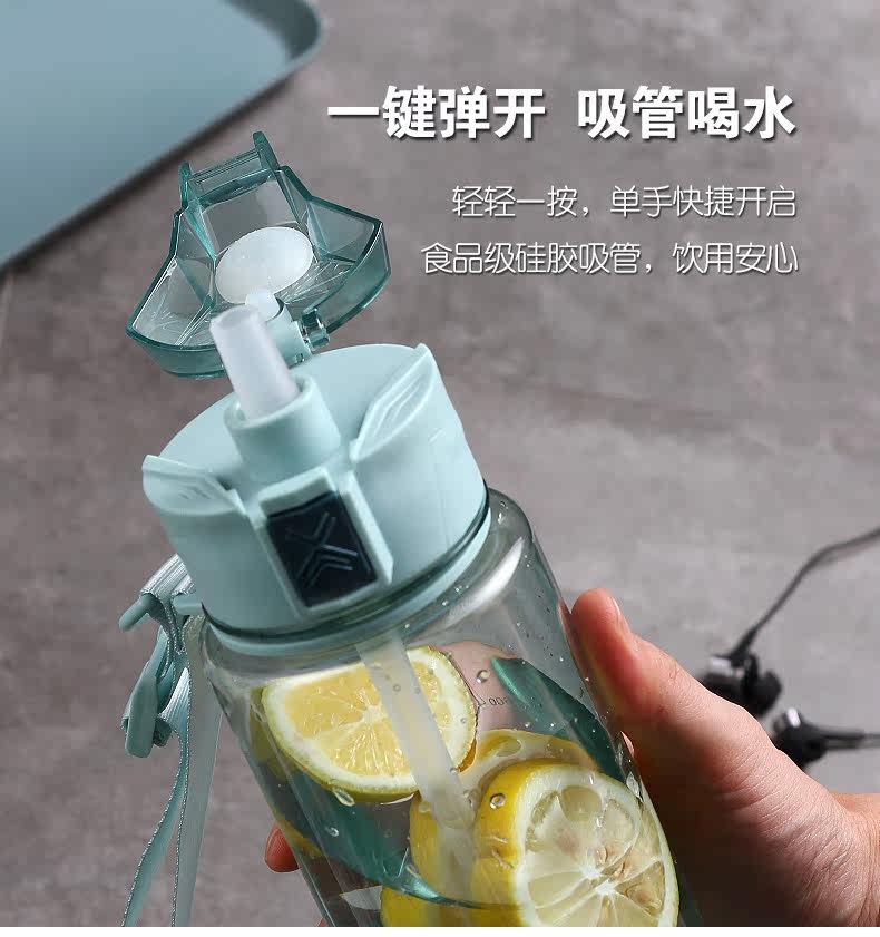 Вместительный и большой пластиковый дорожный спортивный портативный космический чайник для спортзала, трубочка, подтяжки