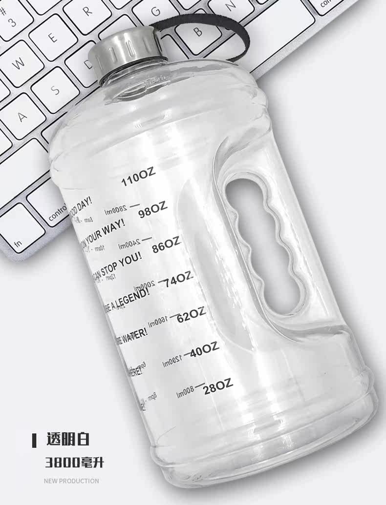 Пластиковый вместительный и большой чайник для воды, ручка со стаканом, ведро для спортзала, 3800 мл