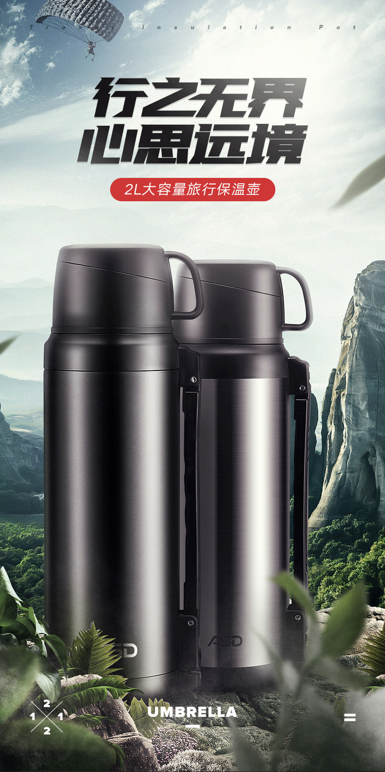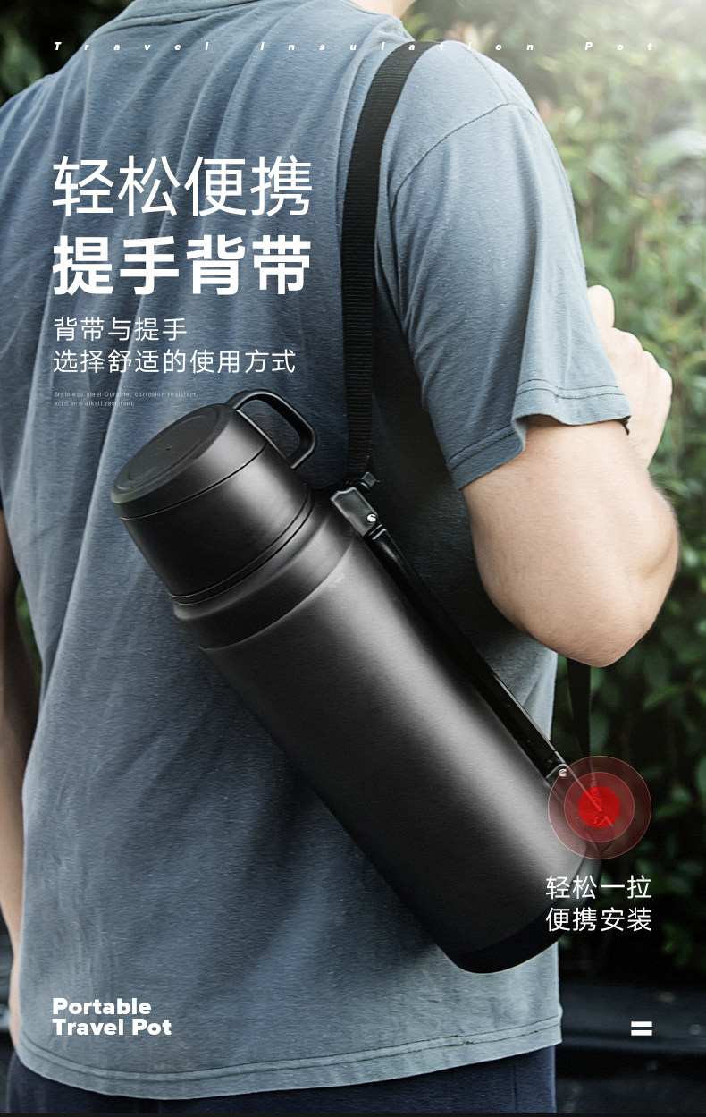 Вместительный и большой стакан, дорожная чайная чашка, термос для путешествий подходит для мужчин и женщин, портативные подтяжки, чайник