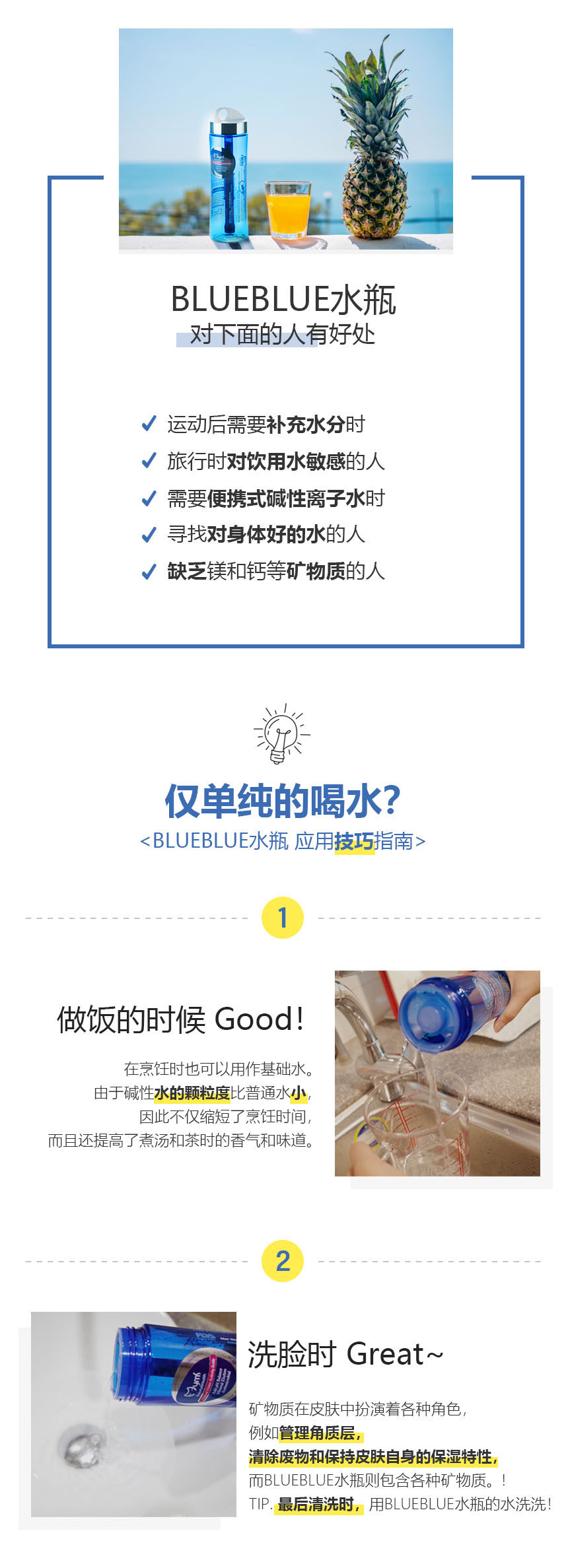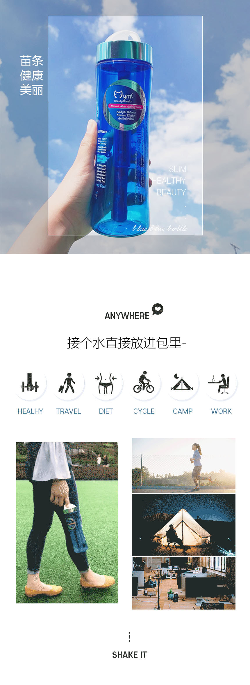 Корея прямая почтовая рассылка Miymei Blueblue Portable пластиковый минерал Субалкалиновая водяная чашка проста и здорово
