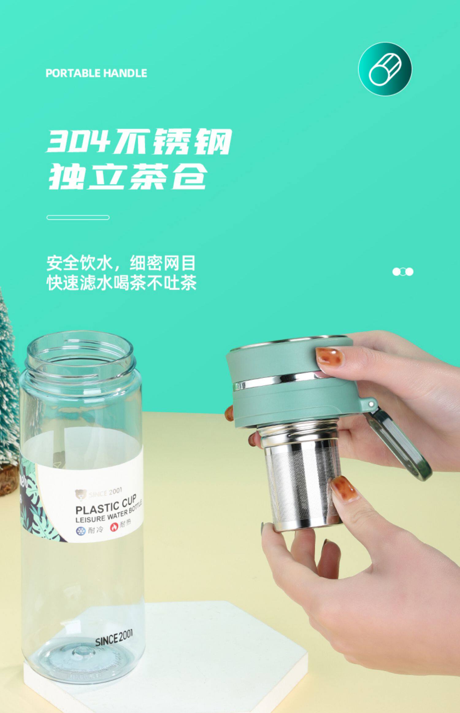 Пластиковый чай для воды, вместительная и большая чайная чашка, портативный чайник подходит для мужчин и женщин, защита при падении