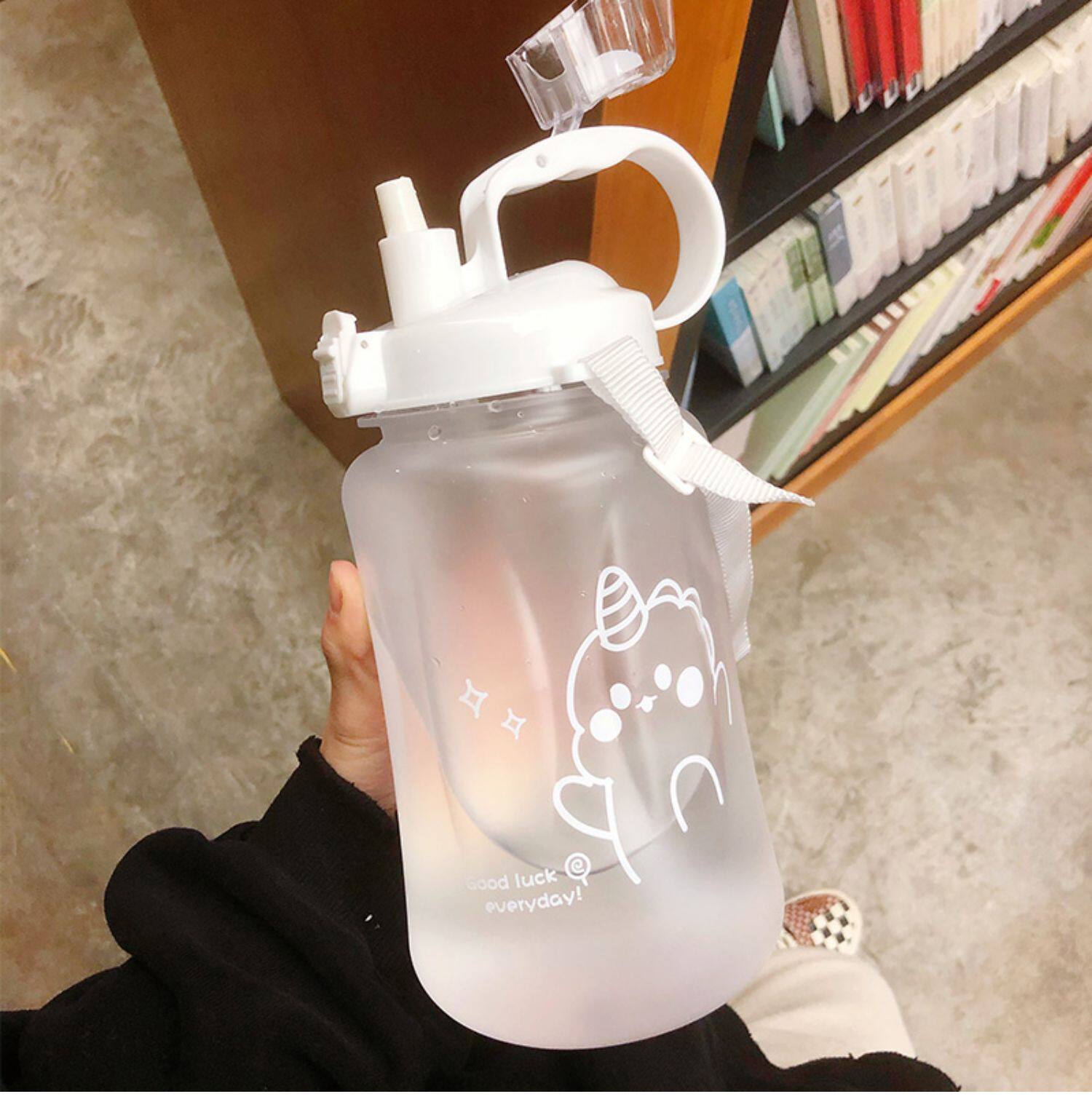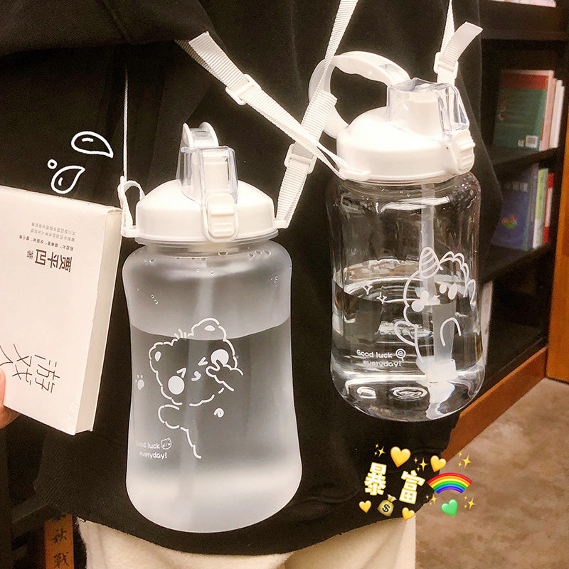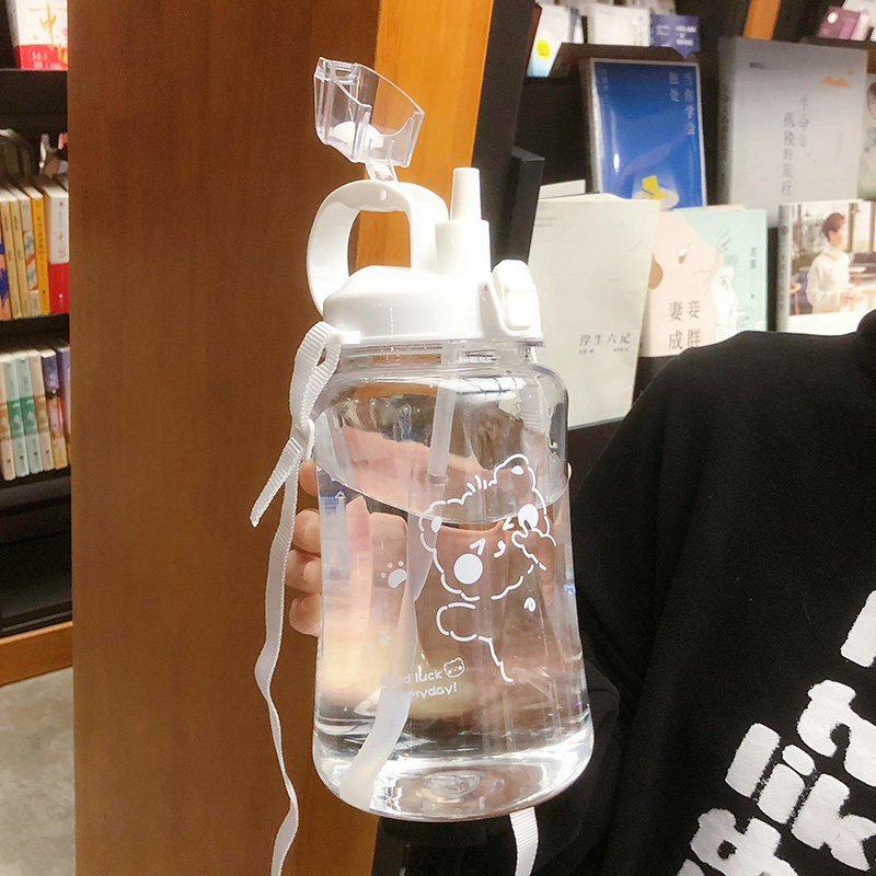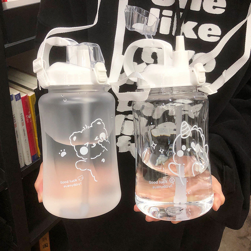 Пластиковая спортивная большая трубочка со стаканом, вместительный и большой портативный чайник для спортзала подходит для мужчин и женщин для школьников, защита при падении