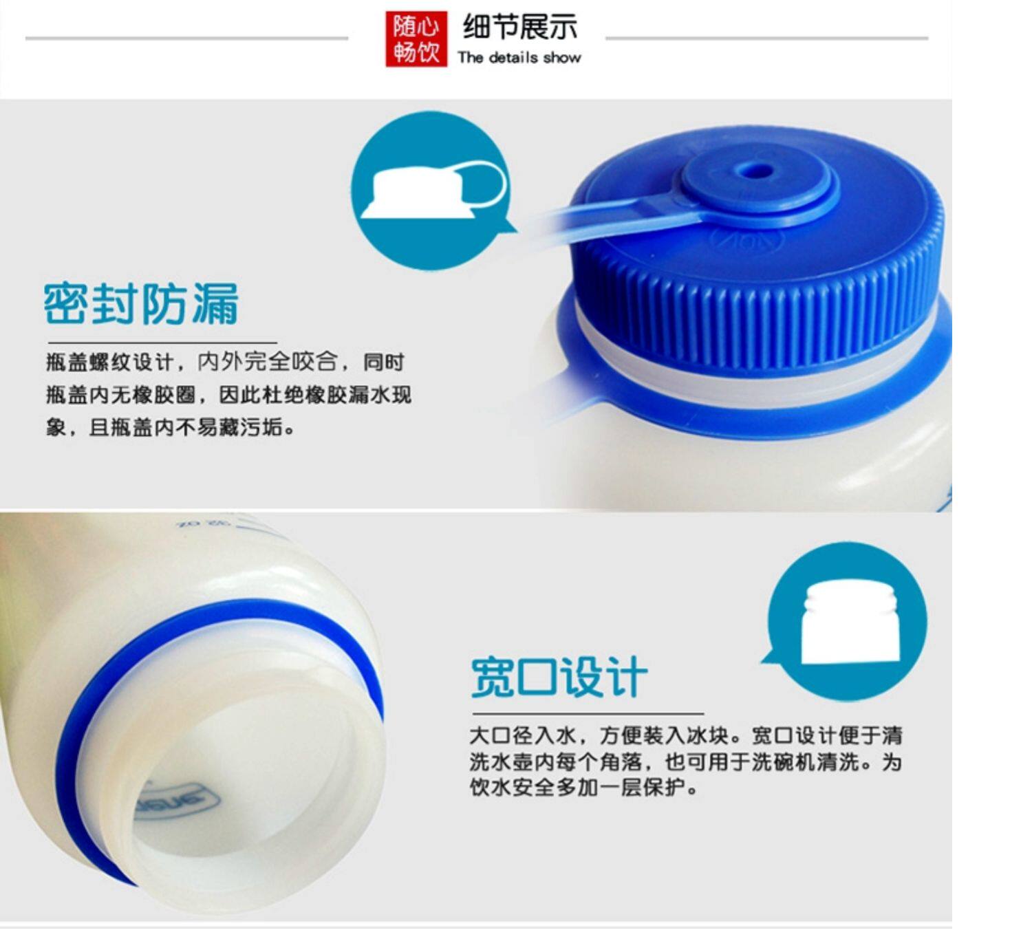 Вместительный и большой портативный импортный летний чайник со шкалой для спортзала, широкое горлышко