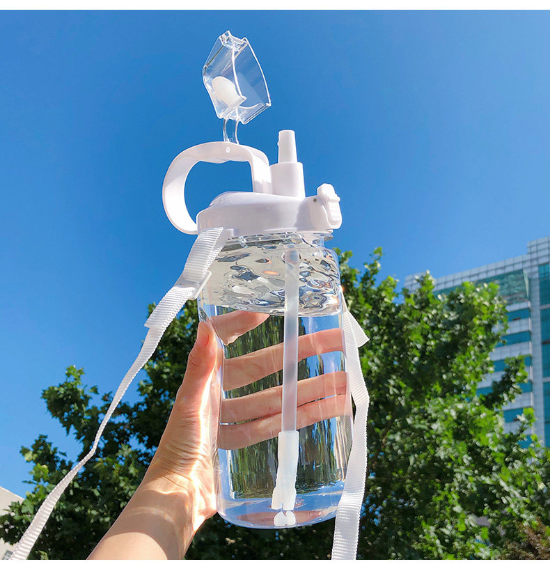 Вместительная и большая портативная дорожная спортивная бутылка со стаканом для школьников для спортзала, трубочка, подтяжки, ручка