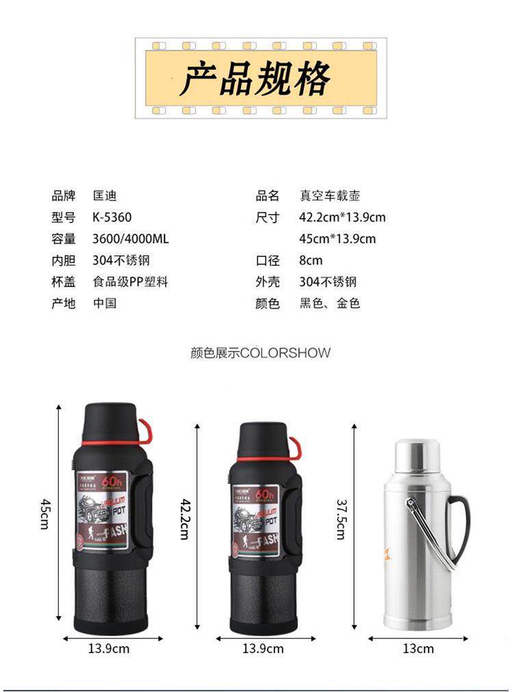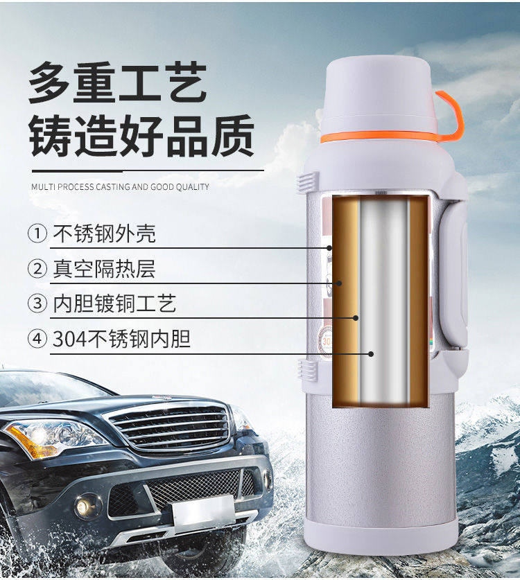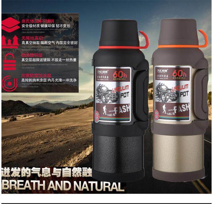 Вместительный и большой дорожный термос для путешествий для домашнего использования, чайник, портативные подтяжки, цвета шампанского