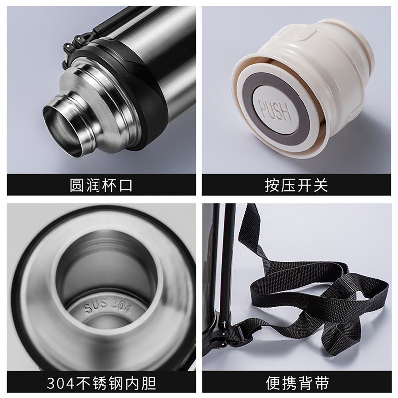 Вместительный и большой стакан, термос из нержавеющей стали для домашнего использования, портативные дорожные подтяжки, чайник для путешествий, нержавеющая сталь AISI 304