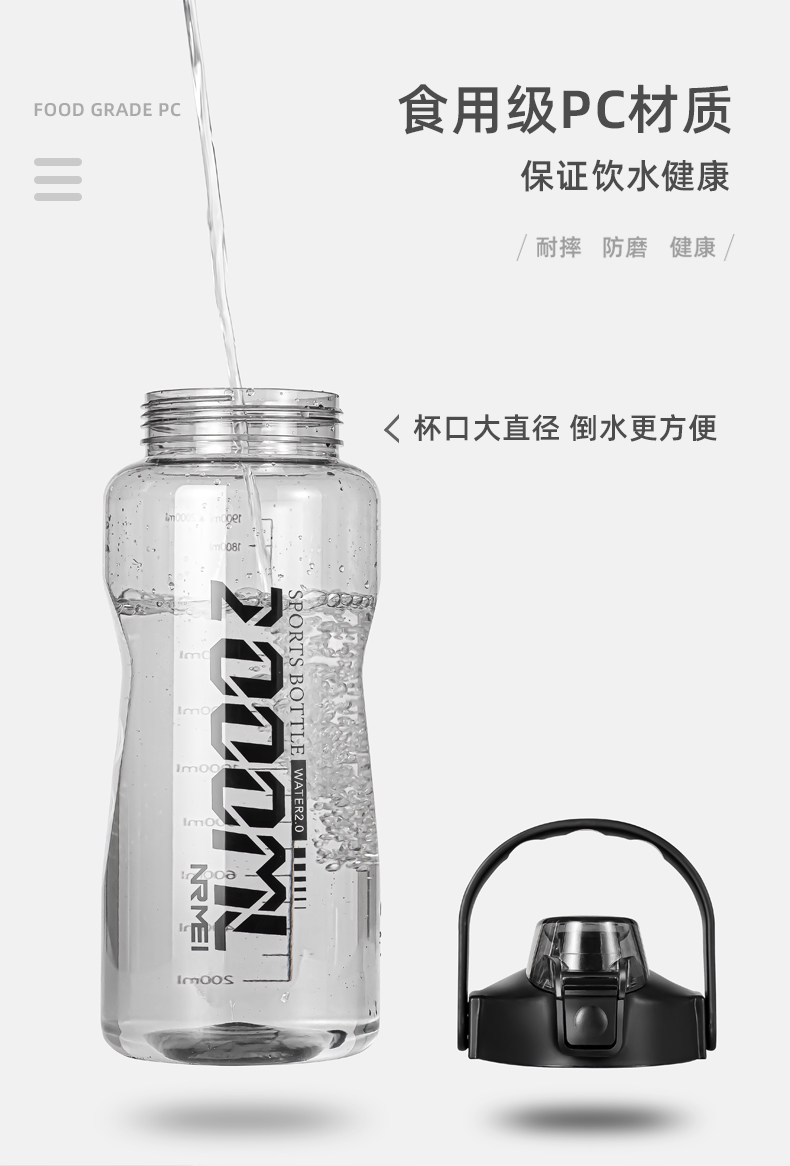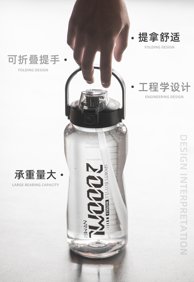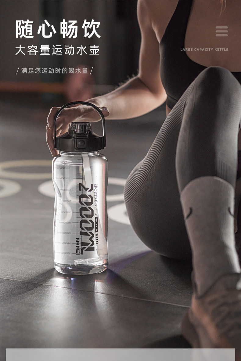 Спортивная вместительная и большая бутылка для воды, большая чайная чашка, летний портативный пластиковый стакан, чайник, объем 2