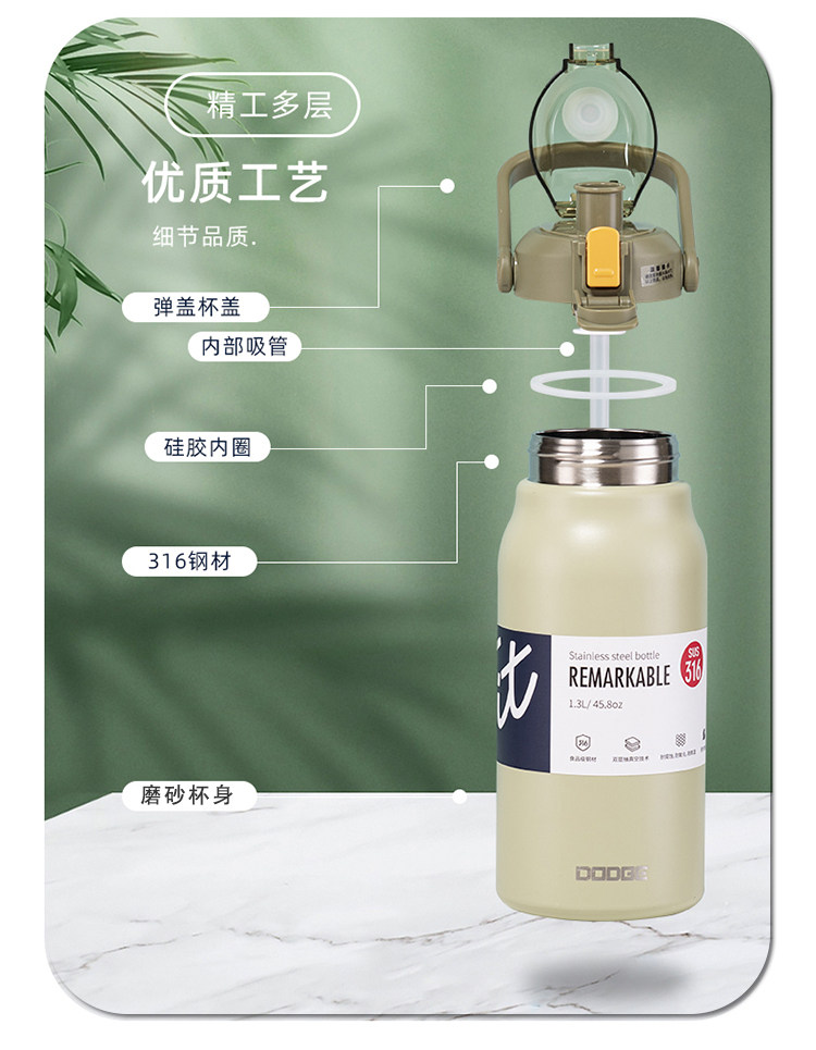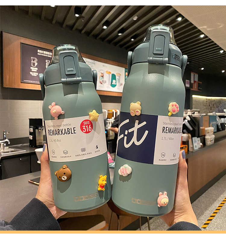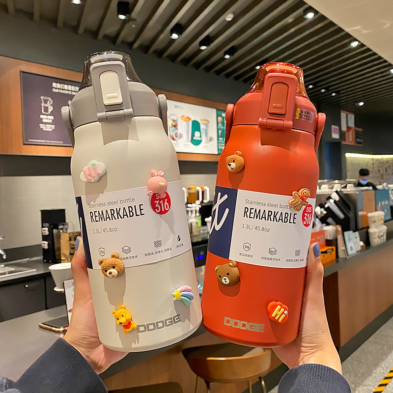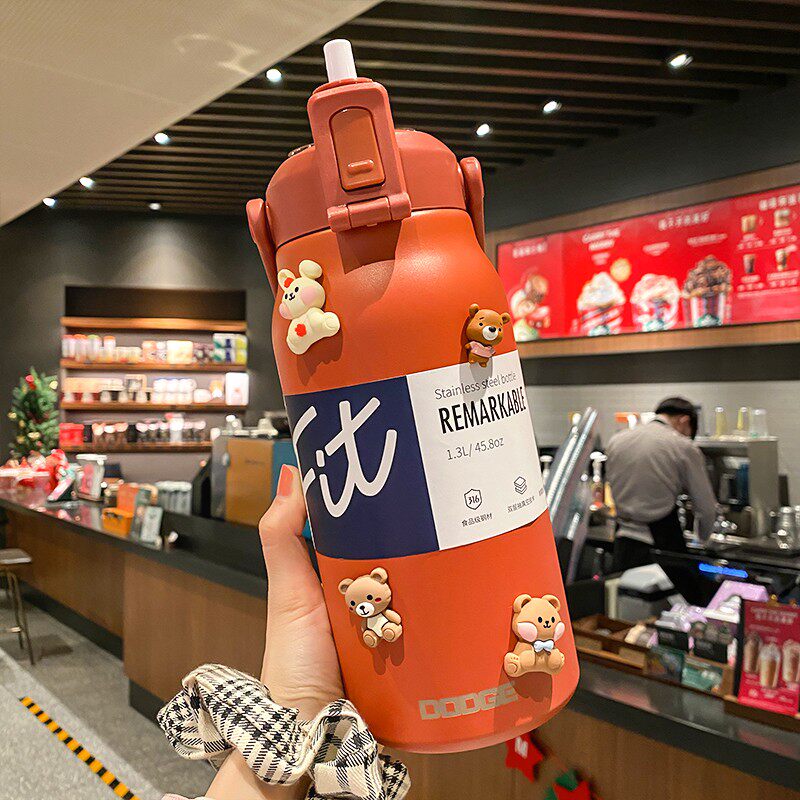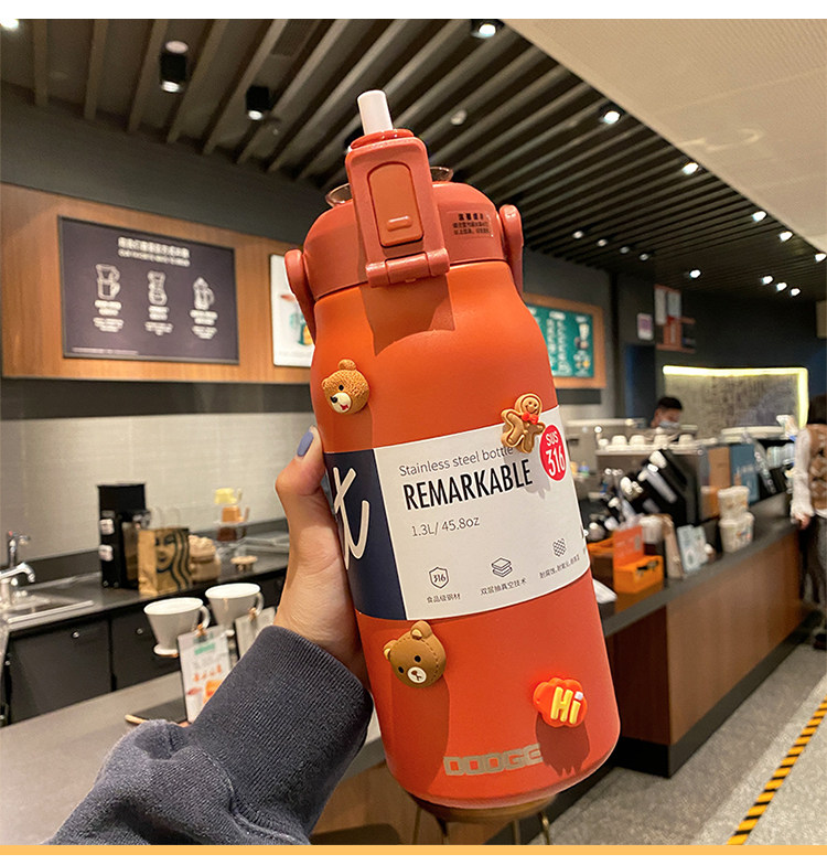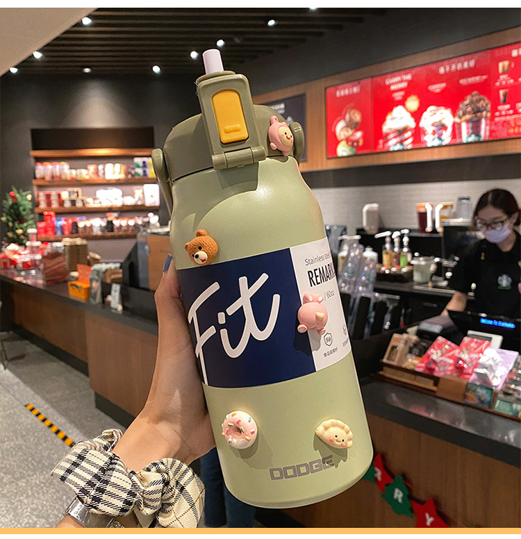 Вместительный и большой высококачественный стакан из нержавеющей стали, спортивная трубочка со стаканом, чайник, 2000 мл