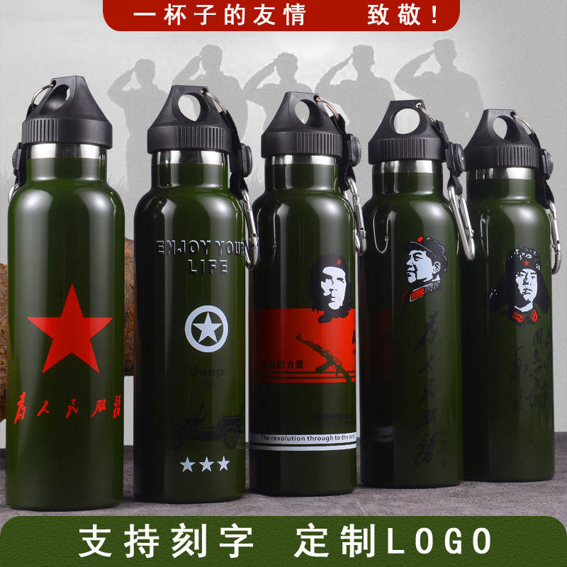 Дорожная вместительная и большая портативная спортивная бутылка из нержавеющей стали, альпинистский ретро камуфляжный стакан для спортзала