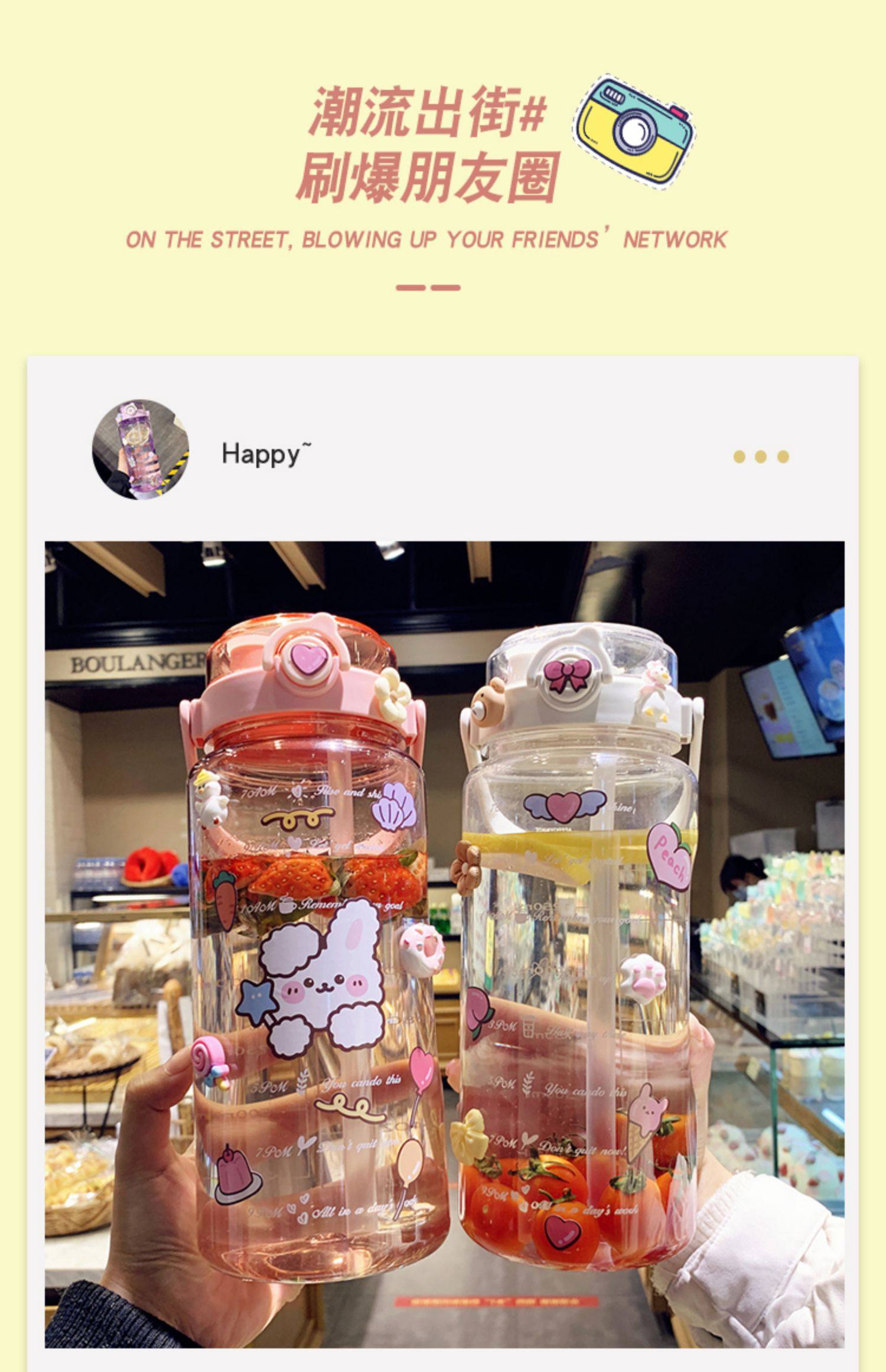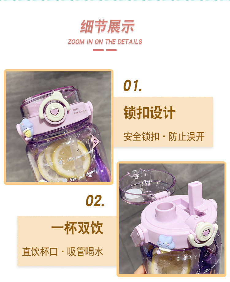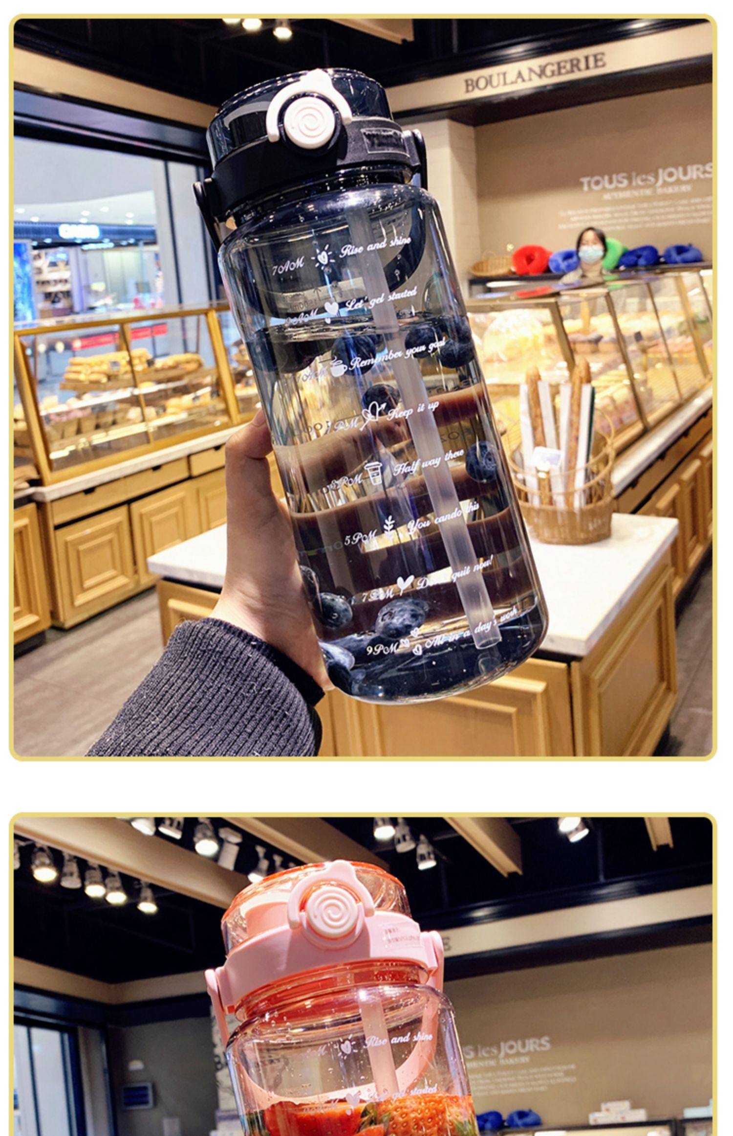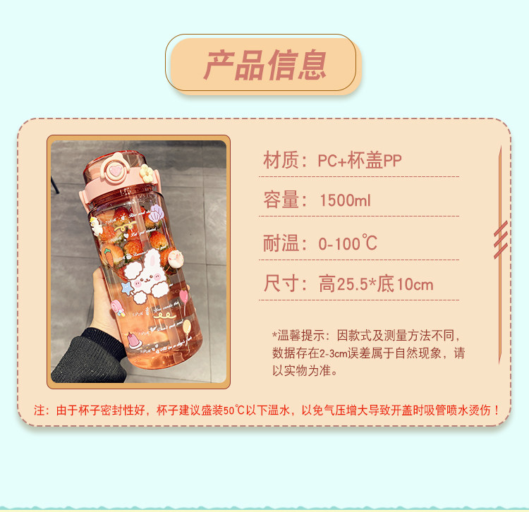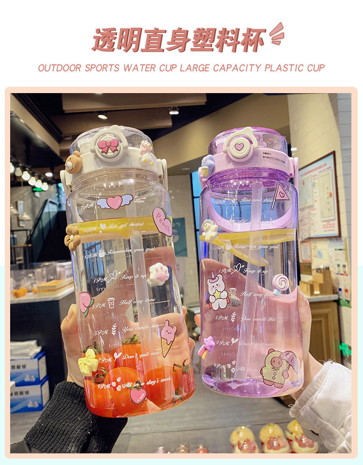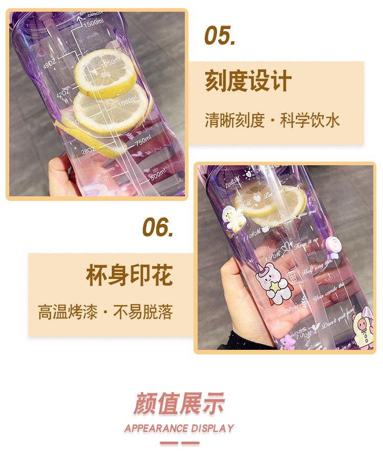 Вместительная и большая высококачественная пластиковая трубочка со стаканом, портативный спортивный чайник, 1500 мл