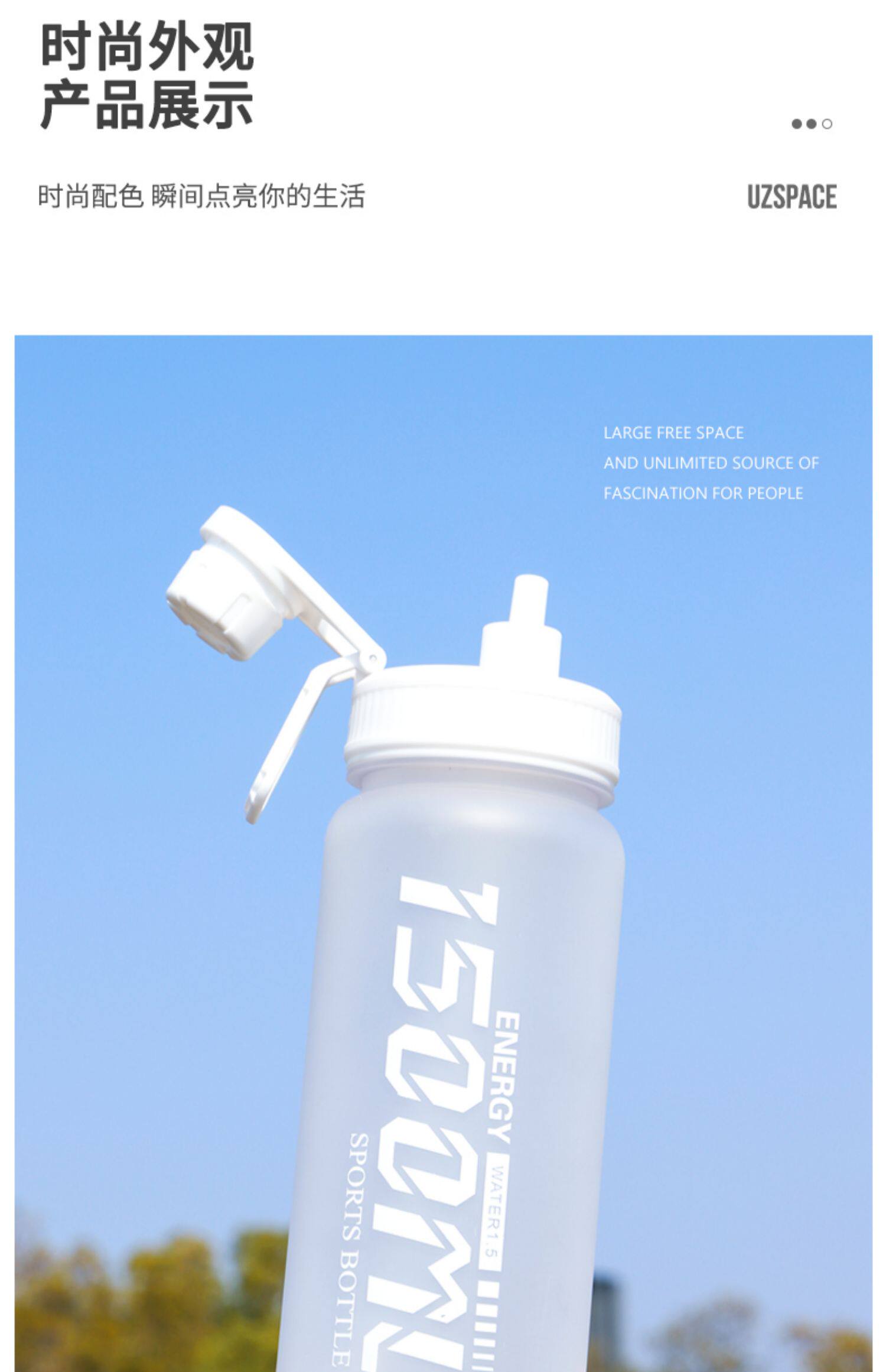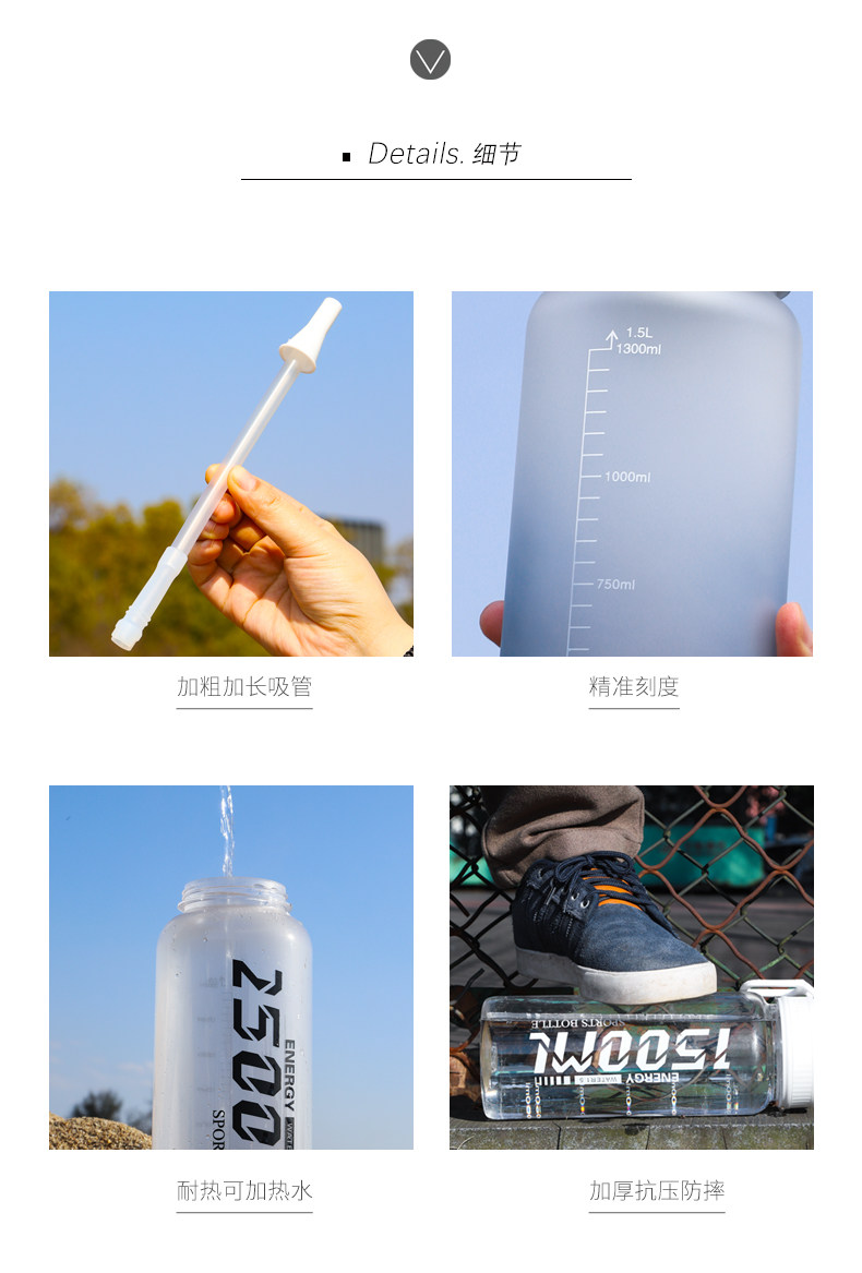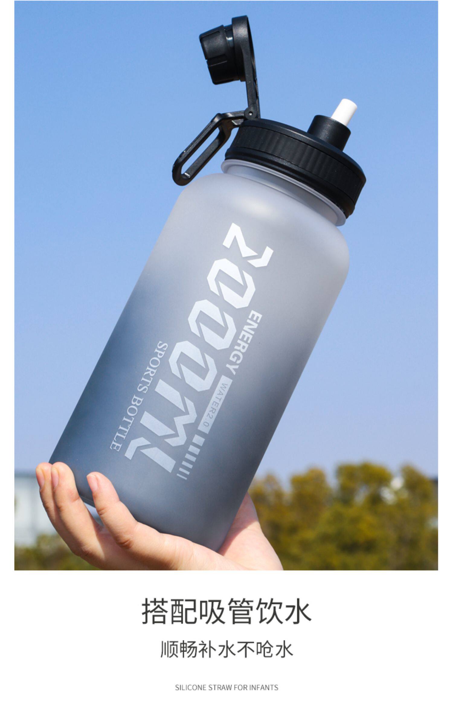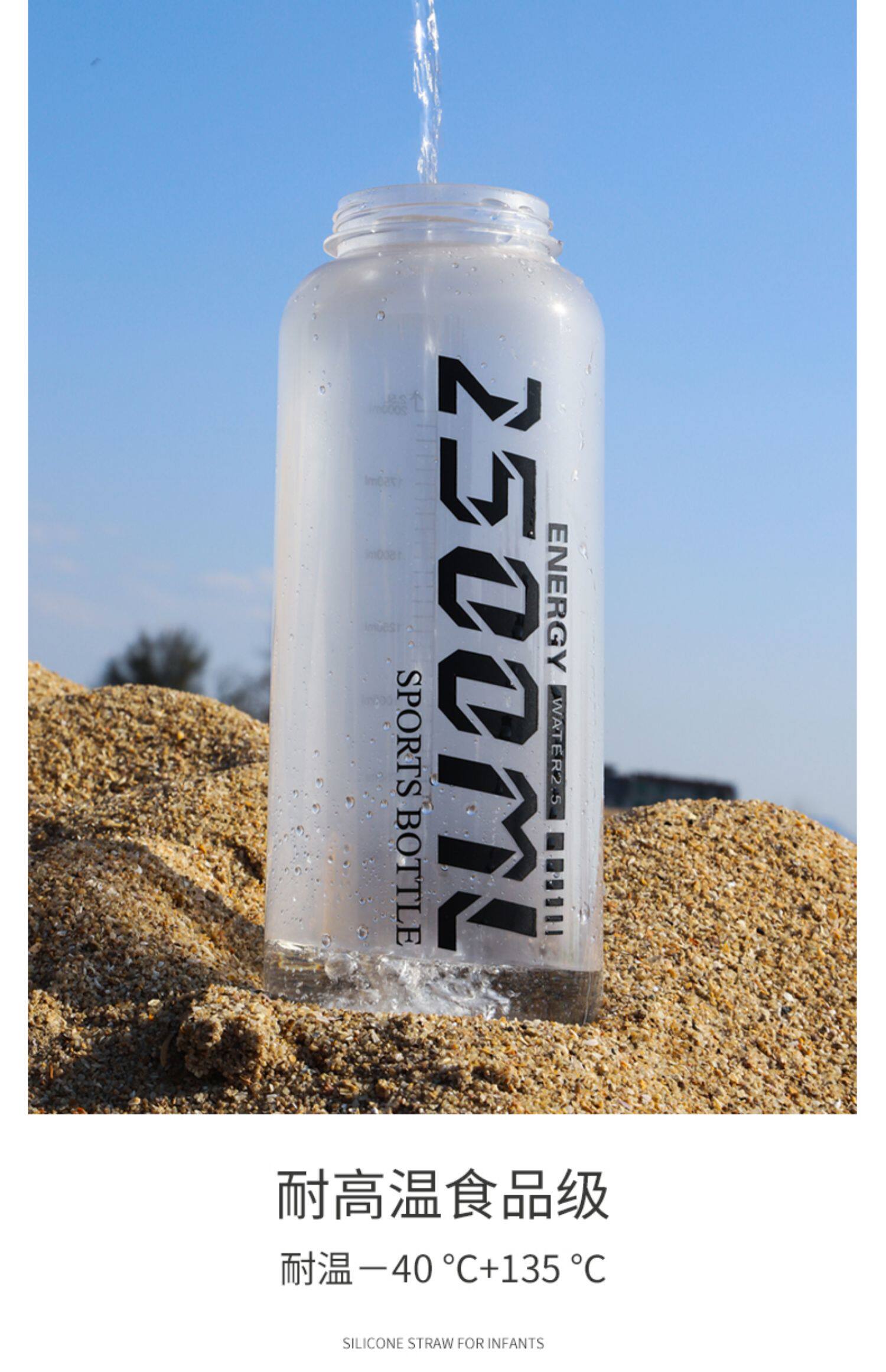 Вместительная и большая летняя портативная пластиковая спортивная бутылка для спортзала, 2500 мл