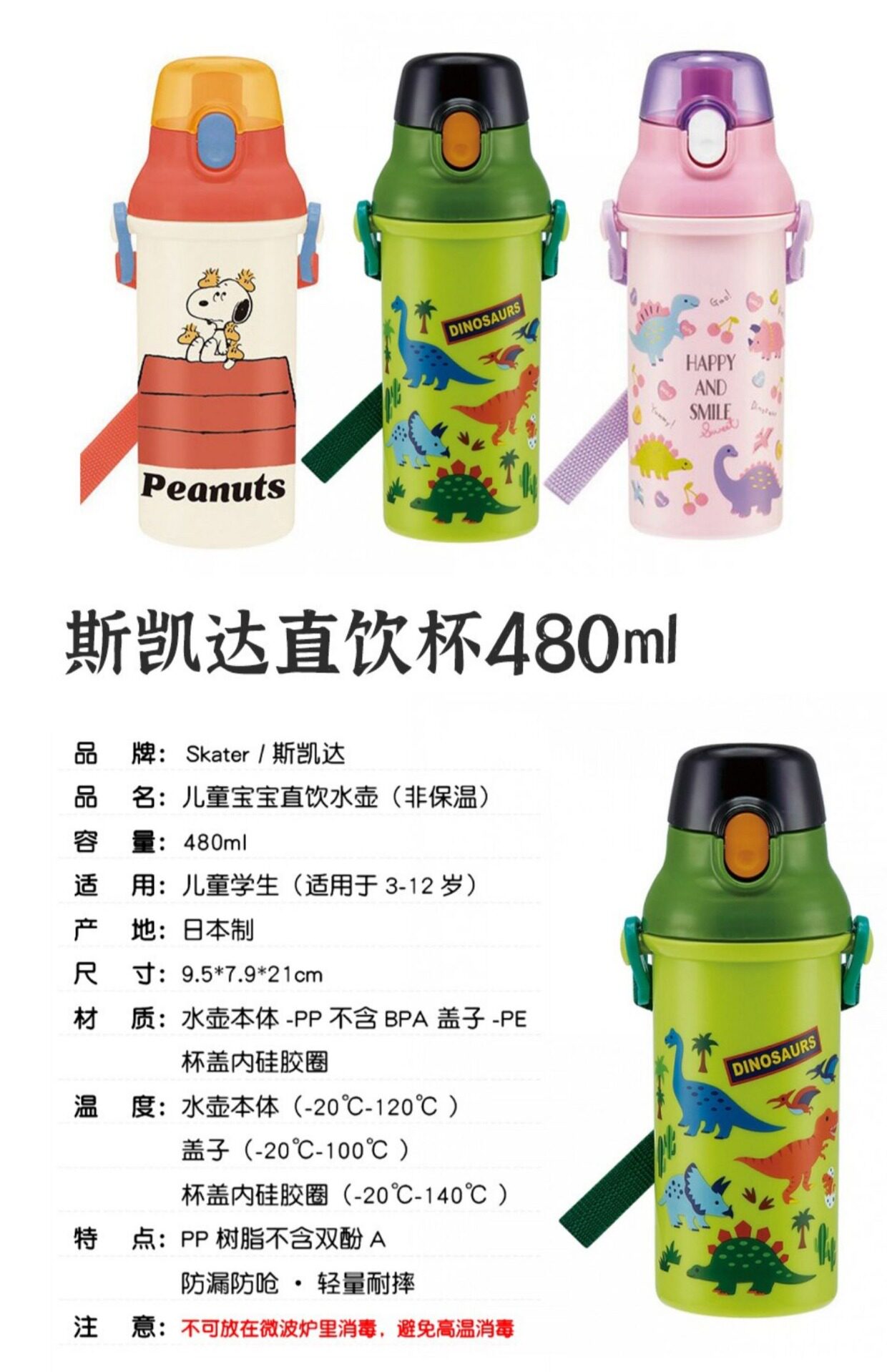 Японский оригинальный импортный мультяшный летний детский чайник, объем 480, 480 мл