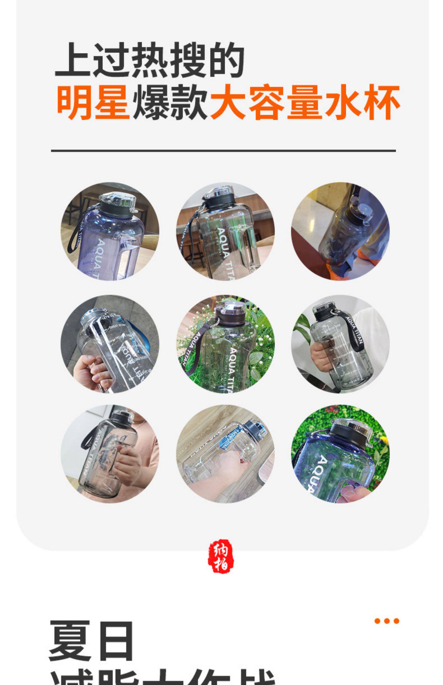 Вместительная и большая спортивная бутылка со стаканом, ведро для спортзала, летний стакан