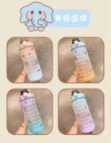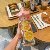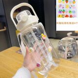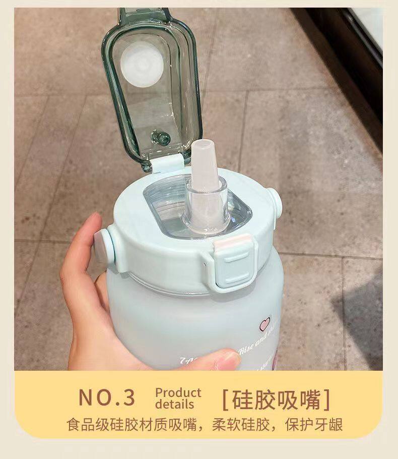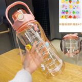 Вместительная и большая дорожная портативная летняя спортивная бутылка для школьников со стаканом подходит для мужчин и женщин, пластиковая трубочка, популярно в интернете