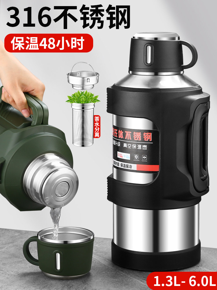 Термос для путешествий, вместительный и большой вакуумный стакан из нержавеющей стали