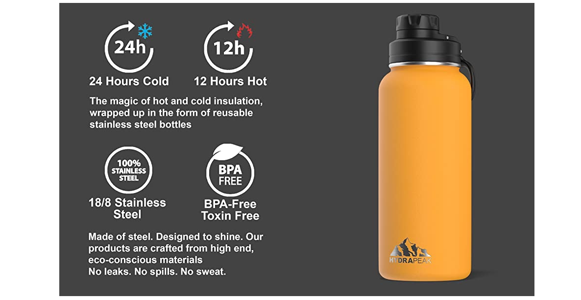 Hydrapeak Изолированная бутылка для воды на 32 унции со спортивной дорожной бутылкой для воды