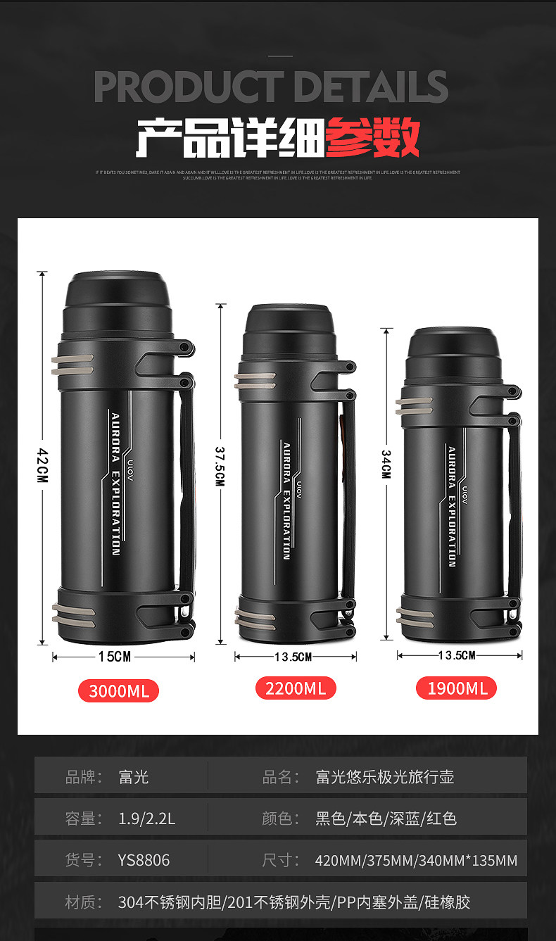 富光 Вместительный и большой термос, портативный стакан из нержавеющей стали, чайник, объем 3000, 3000 мл