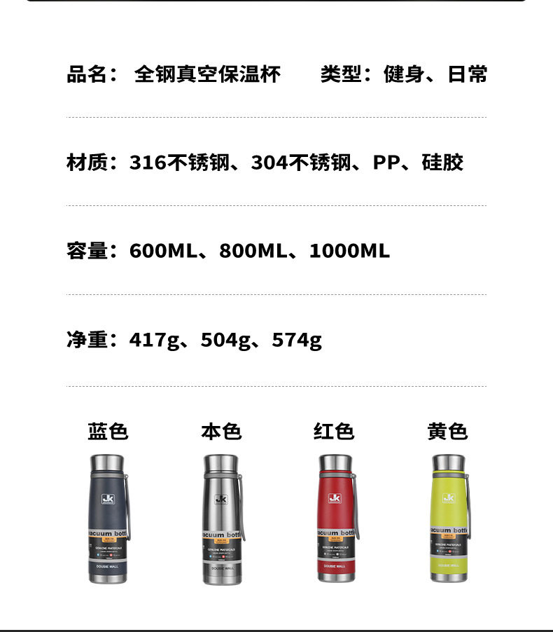 Вместительный и большой стакан подходит для мужчин и женщин из нержавеющей стали, портативная дорожная спортивная бутылка