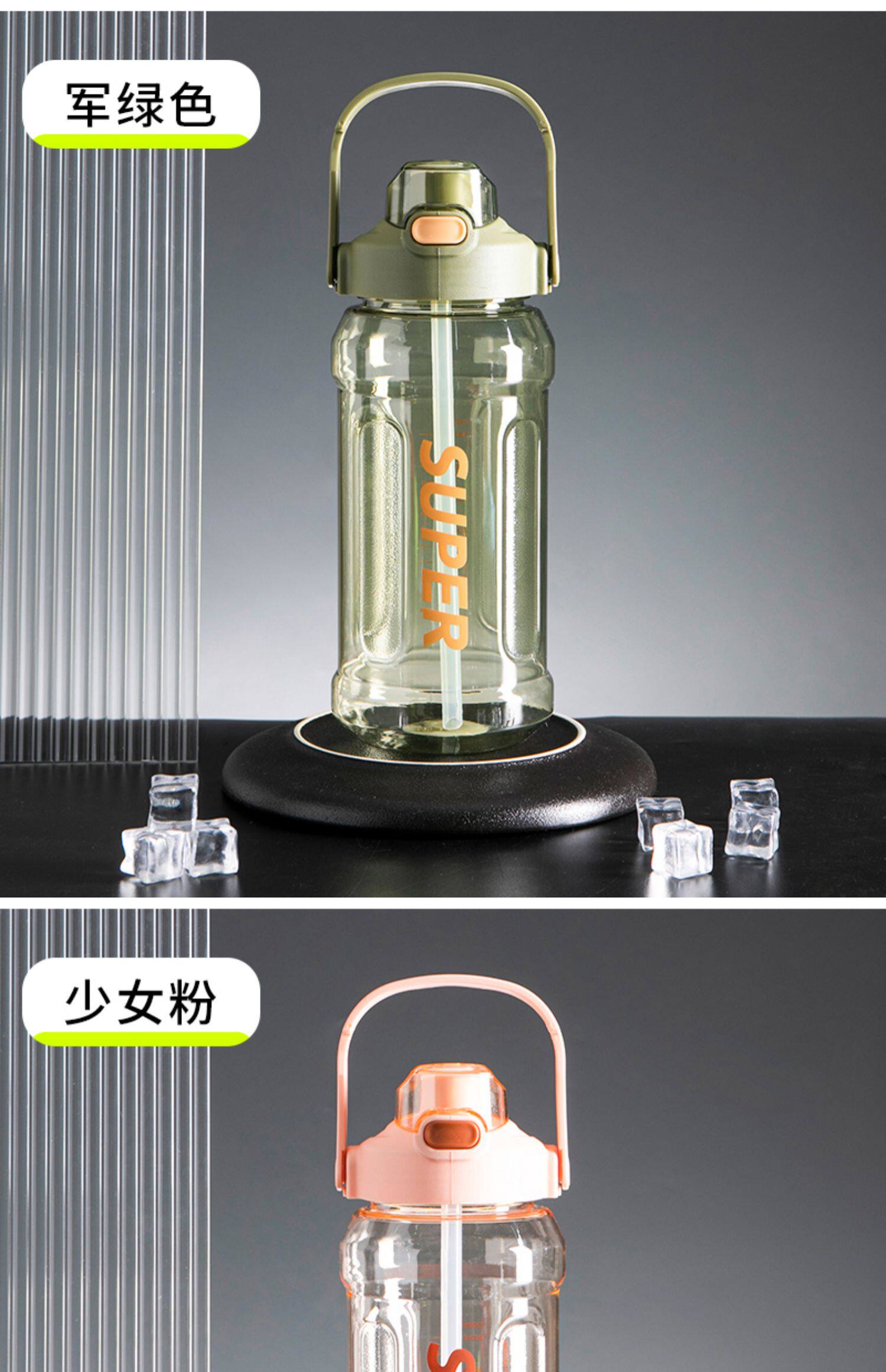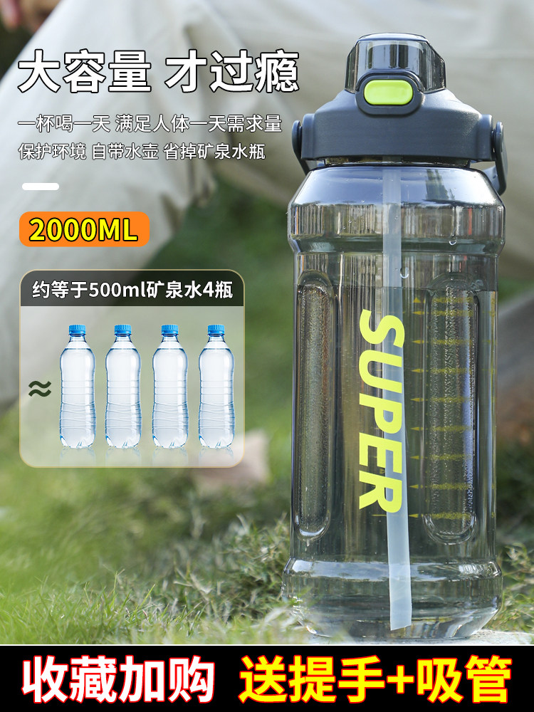 Вместительная и большая чайная чашка, летняя пластиковая спортивная бутылка для спортзала, 2000 мл