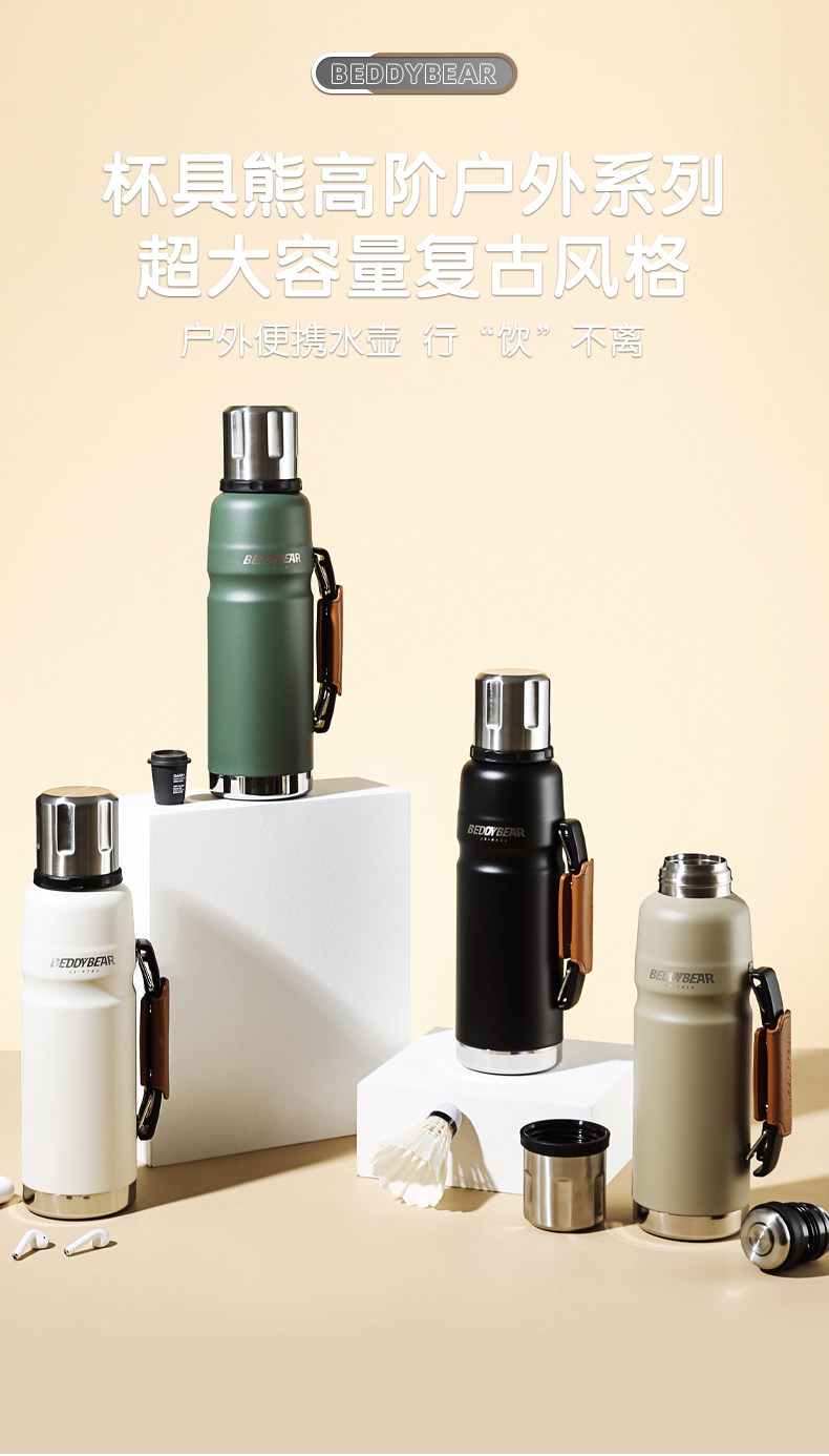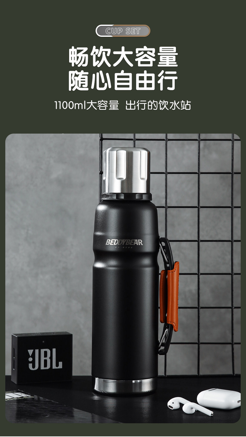 Вместительный и большой стакан, дорожная чайная чашка, портативный термос, спортивная бутылка из нержавеющей стали