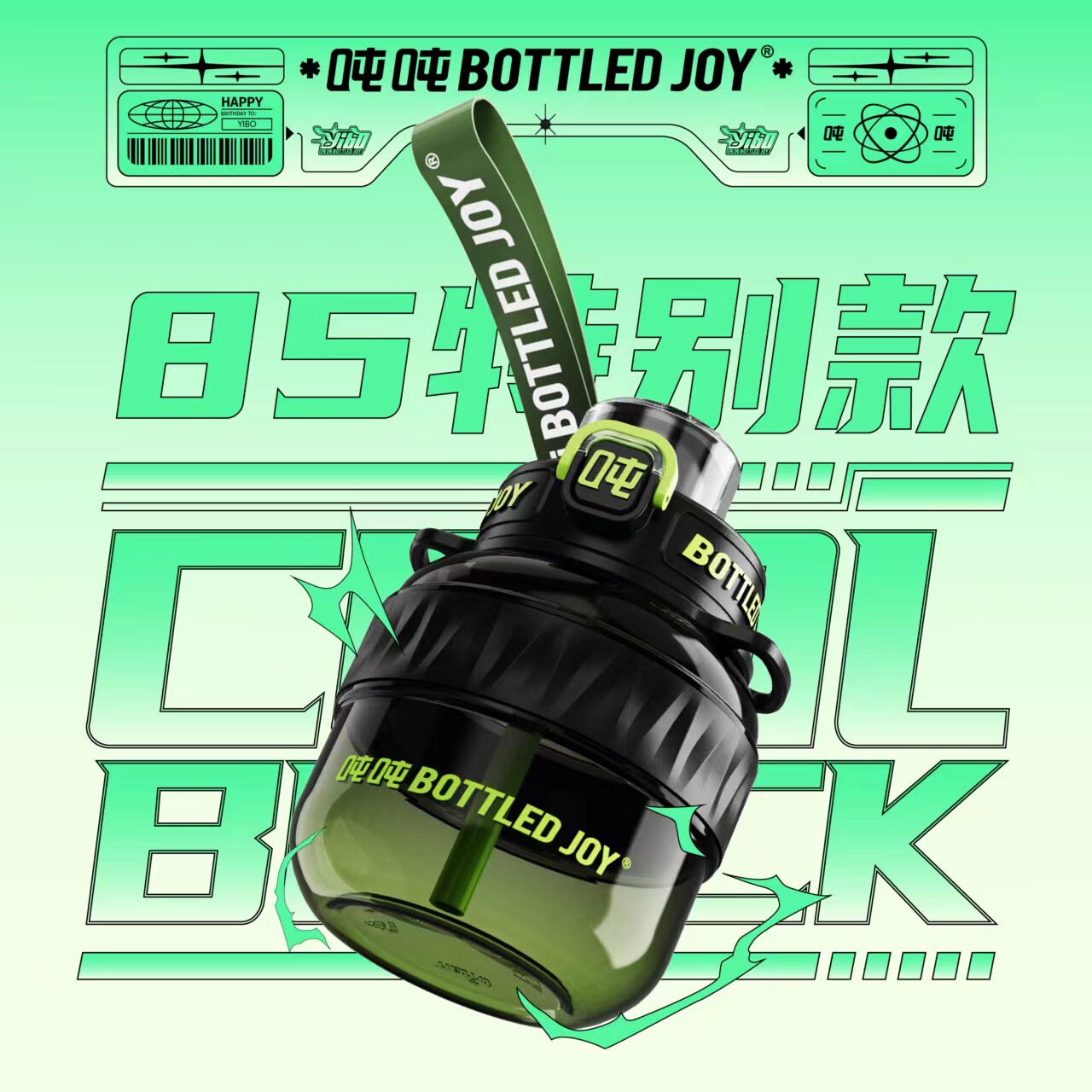 85 День рождения Специальный прохладный градиент цвет Ван Йибо та же бутылка радость прохладный черный зеленый Том Том Тинг Тонг чашка вода