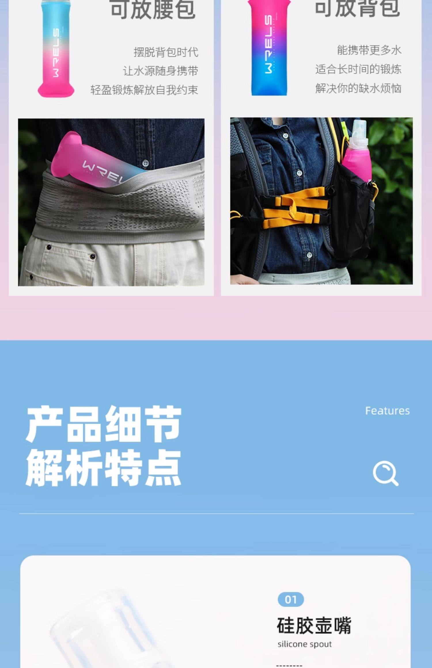 WRELS Портативный чайник для воды, силиконовая складная емкость для воды, для бега, защита при падении