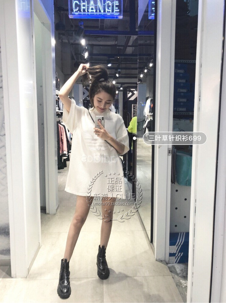 [Taobao] Adidas Three -Leaf Grass Adicolor Yang Mi Big Logo вязаная коротка с коротки