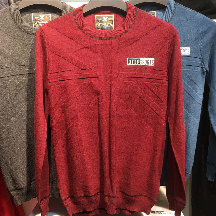 Xtep, хлопковый трикотажный свитер с круглым воротником для отдыха