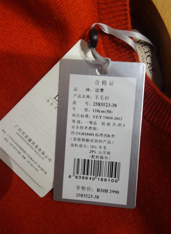 DiCai/Deicae Counter Подлинный осенний и зимний модель 2583523-38 Мужской круглой шеи кашемировый свитер 2990