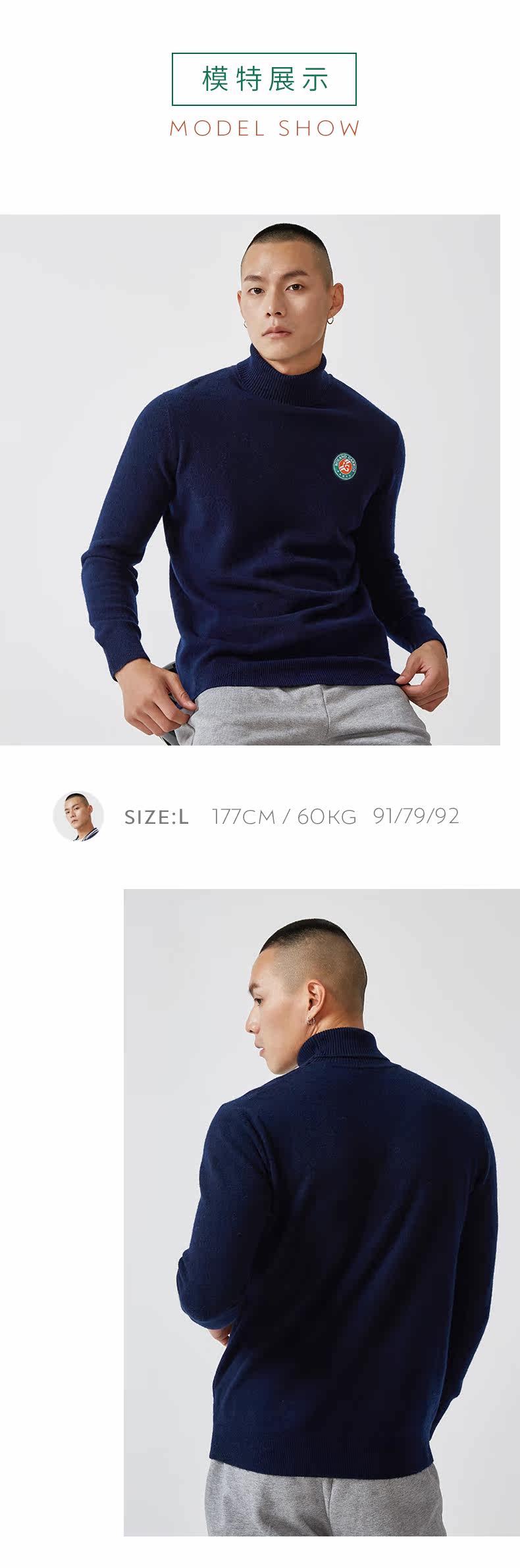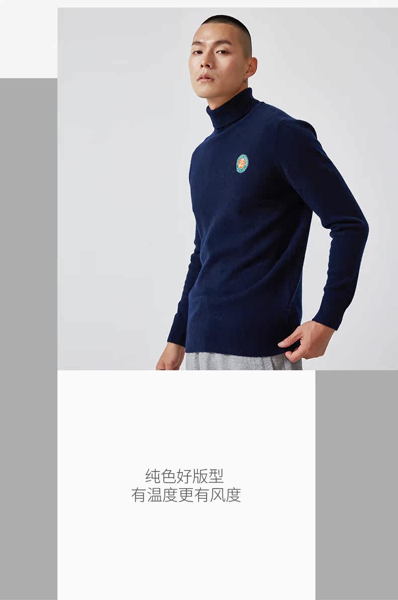 罗兰加洛斯 Демисезонный шерстяной базовый трикотажный свитер, официальный продукт, высокий воротник