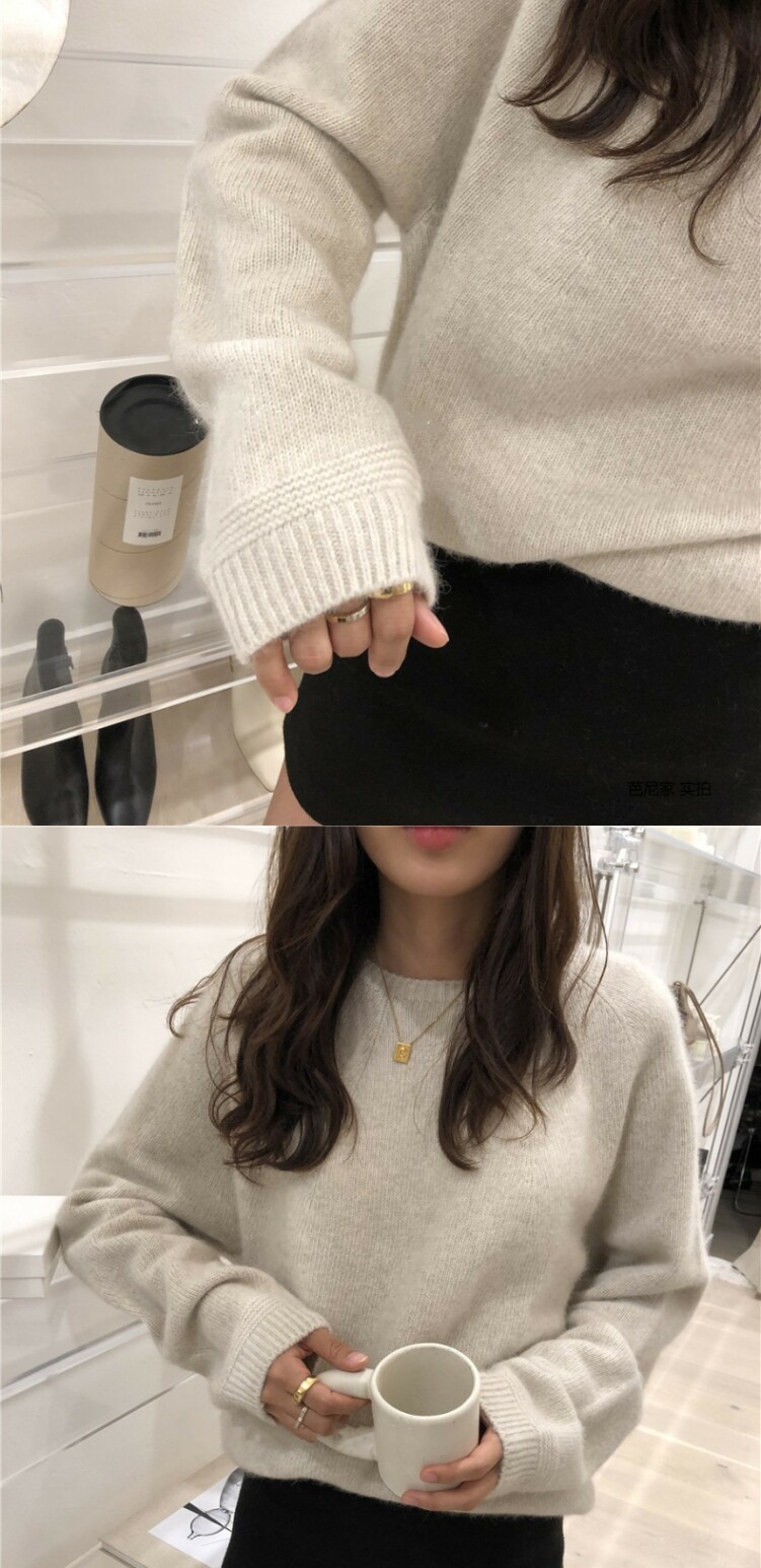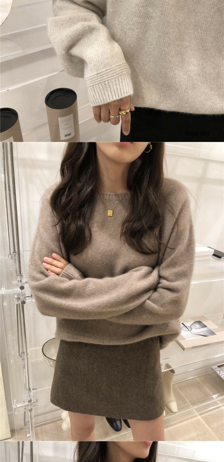 Осенний кашемировый однотонный шерстяной трикотажный свитер с круглым воротником, европейский стиль