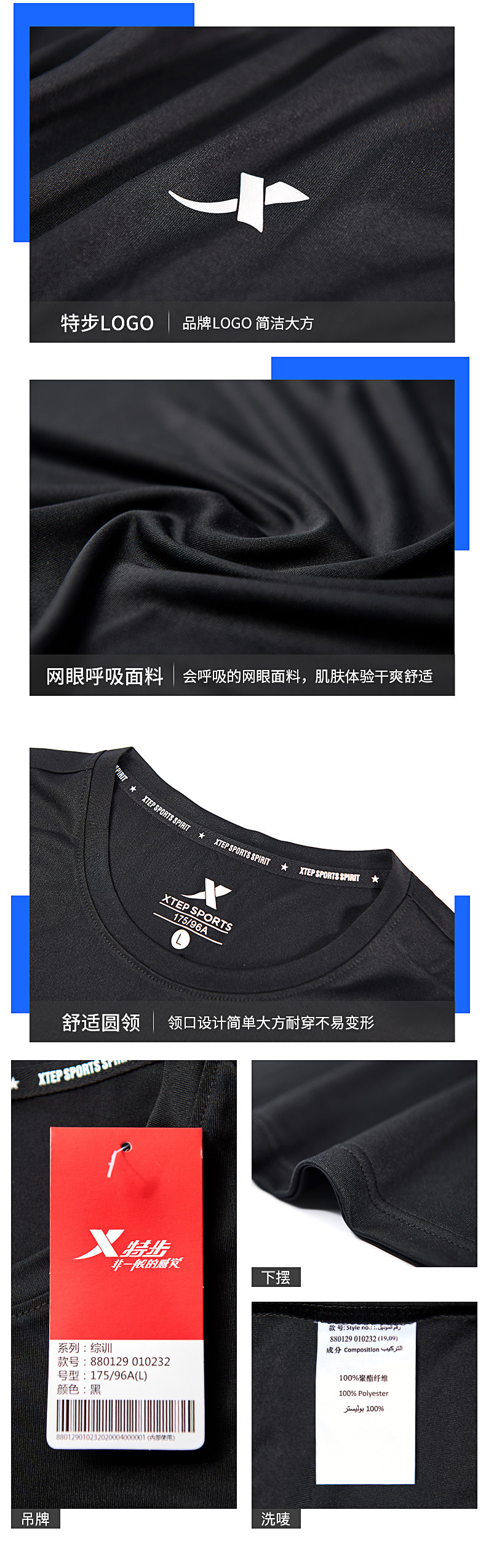 Xtep, летняя дышащая белая спортивная футболка с коротким рукавом, 2020, свободный крой, облегающий крой