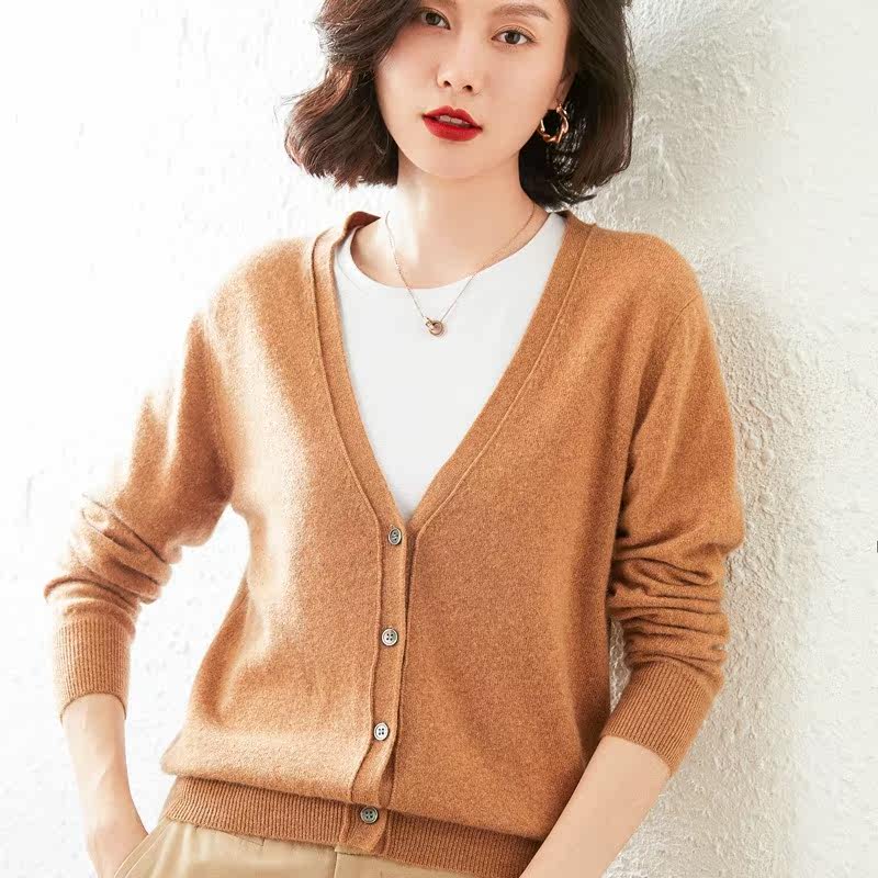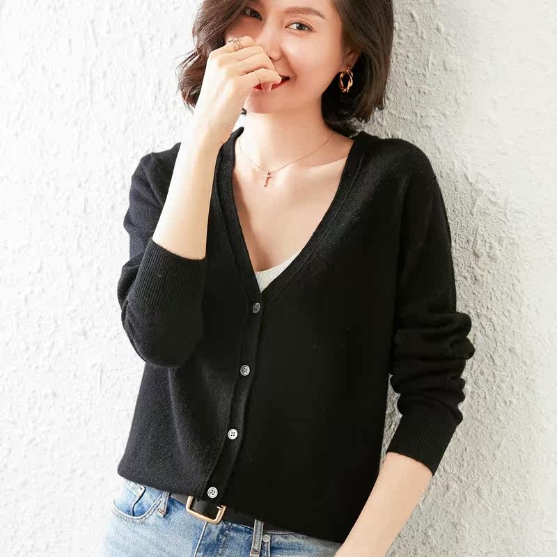Кашемировый тонкий осенний кардиган, короткая шерстяная куртка, европейский стиль, коллекция 2021, оверсайз, V-образный вырез