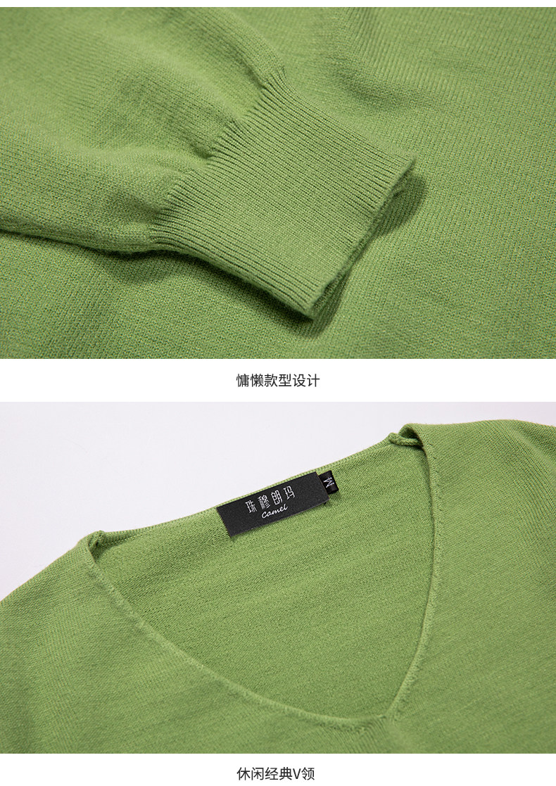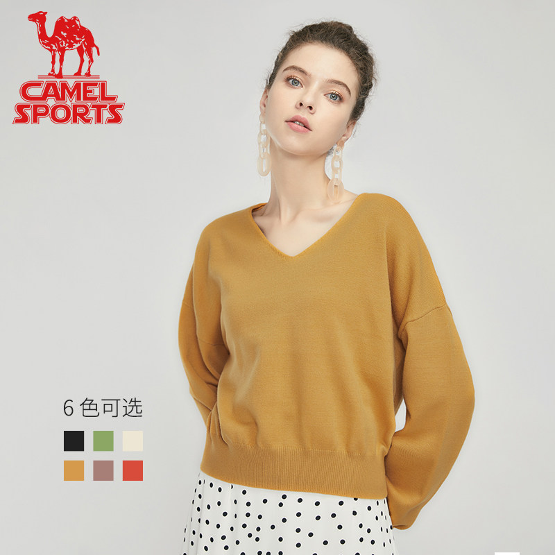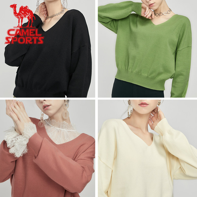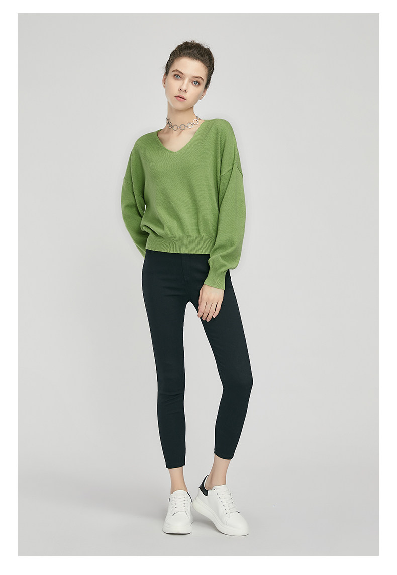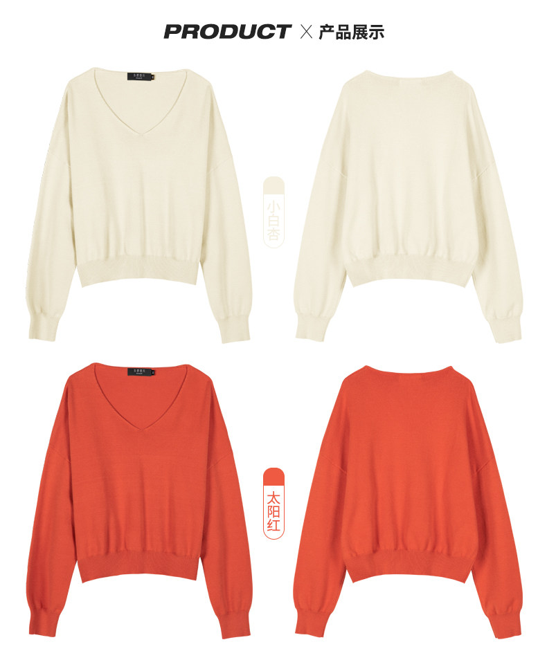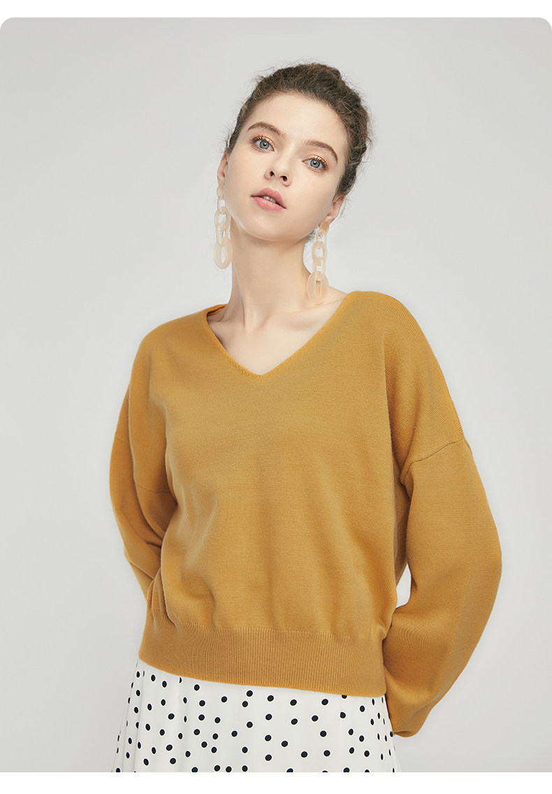Трикотажный осенний базовый свитер, коллекция 2021, V-образный вырез, свободный крой