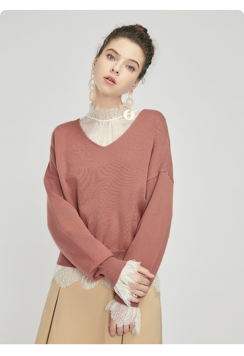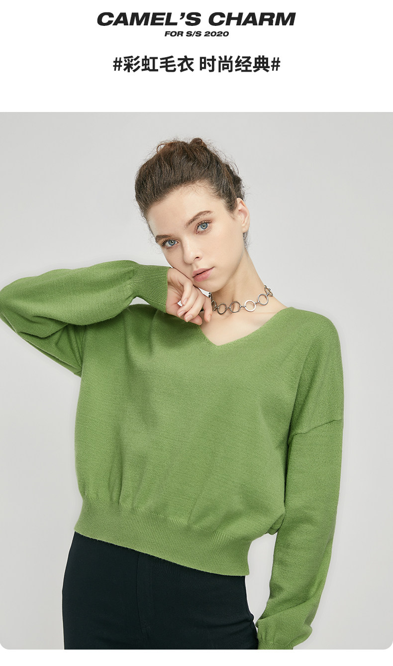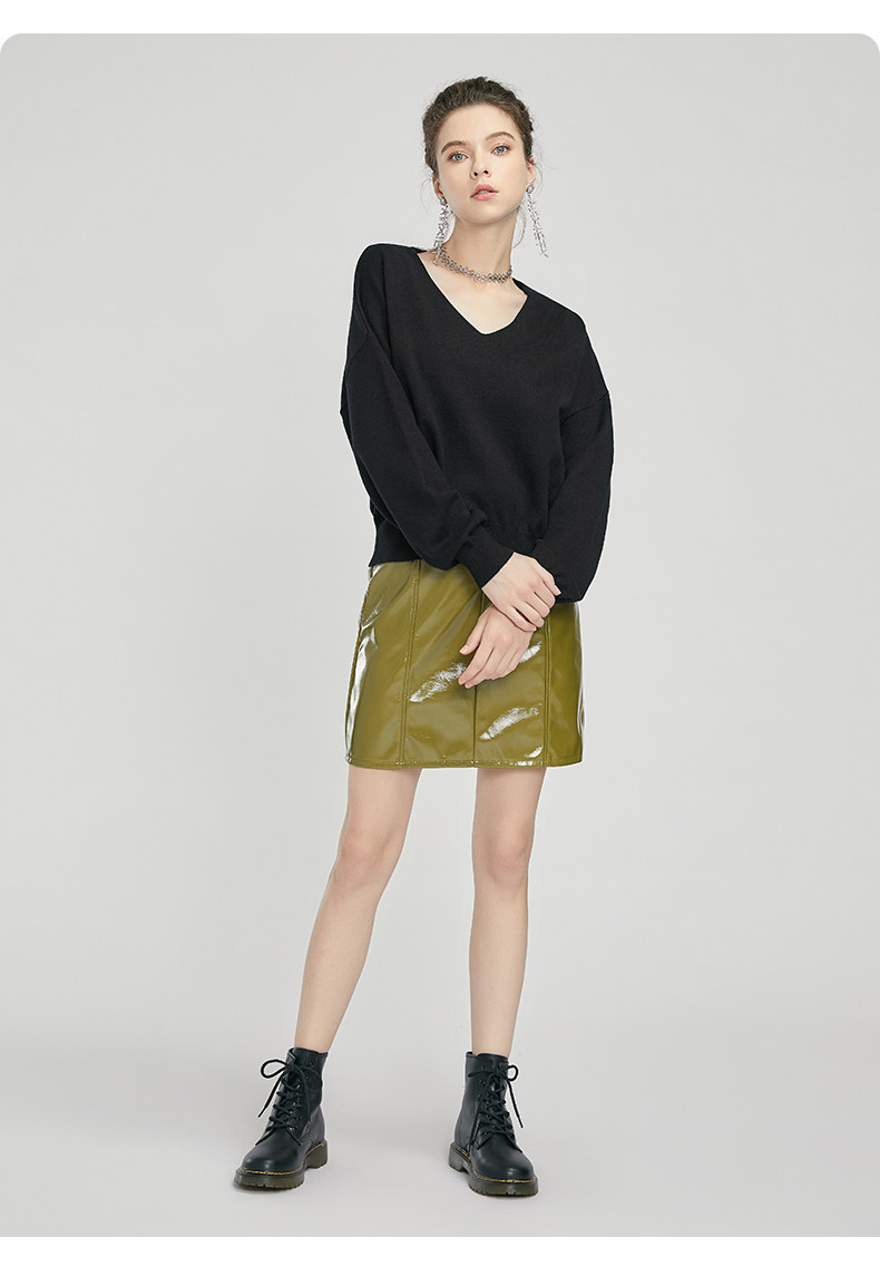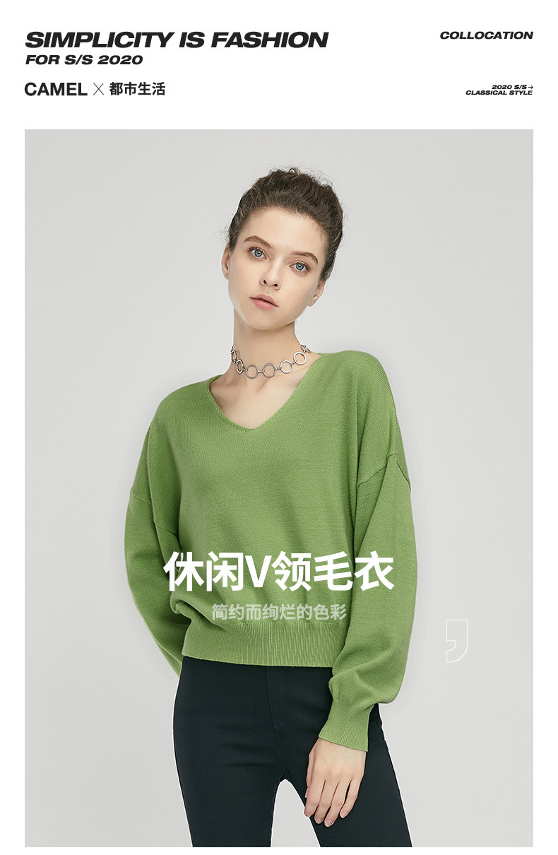 Трикотажный осенний базовый свитер, коллекция 2021, V-образный вырез, свободный крой