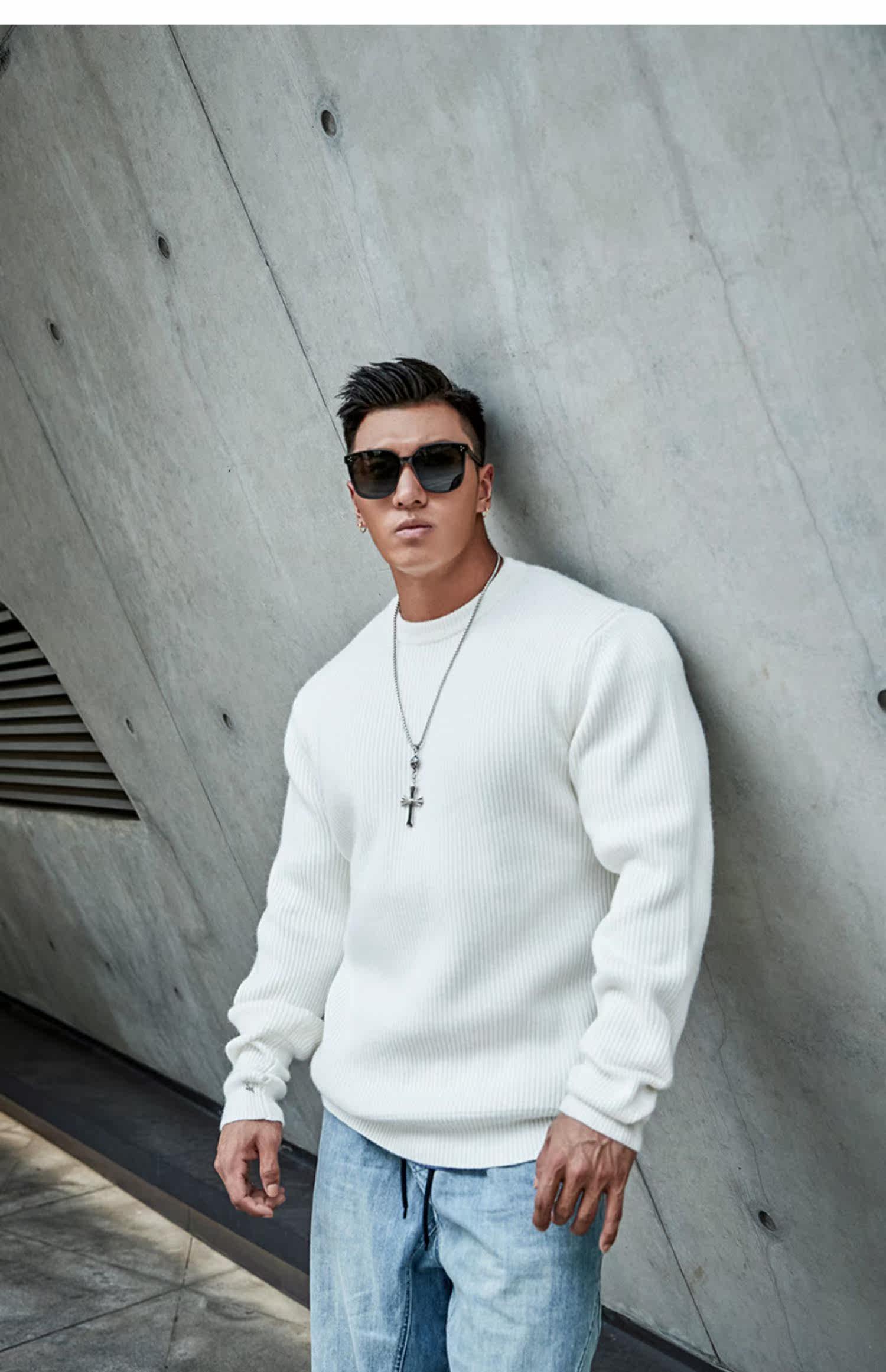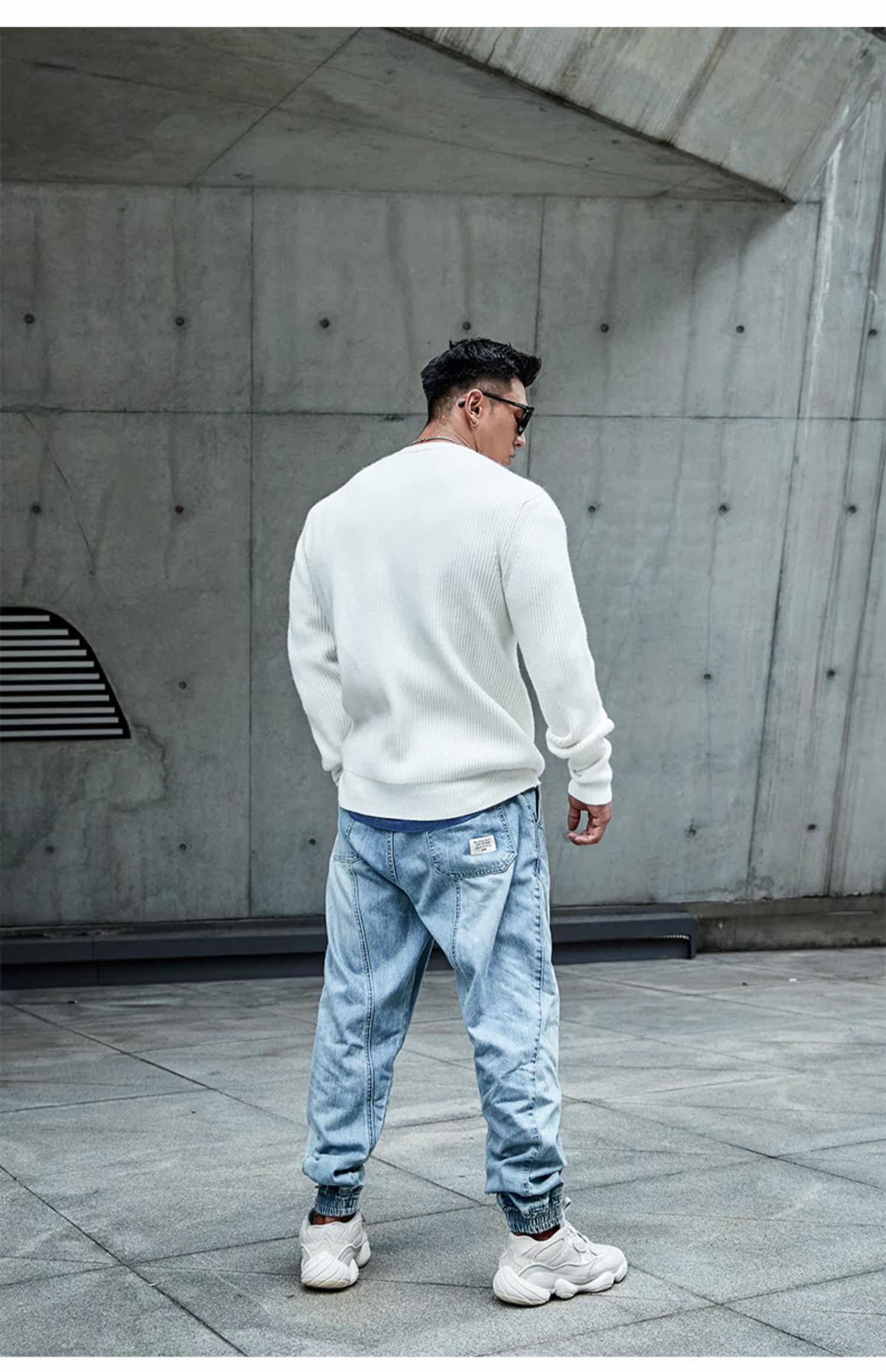 Демисезонный лонгслив с круглым воротником для отдыха, ретро трикотажный свитер, оверсайз