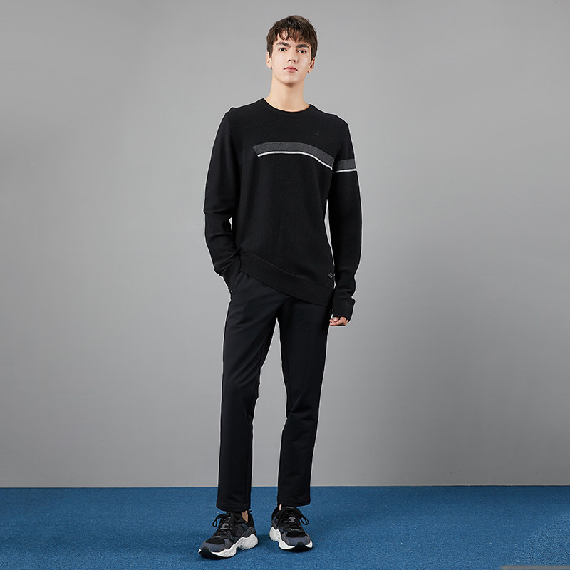 Зимний трикотажный спортивный свитер с круглым воротником
