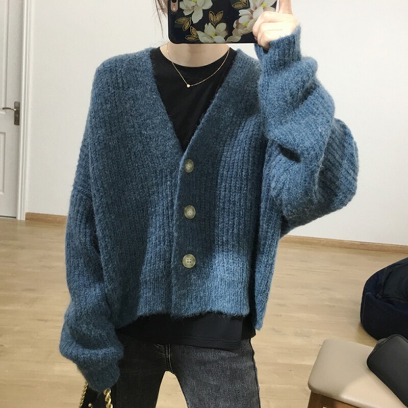 Демисезонный ретро кардиган, короткий свитер, лонгслив, куртка, европейский стиль, V-образный вырез, оверсайз