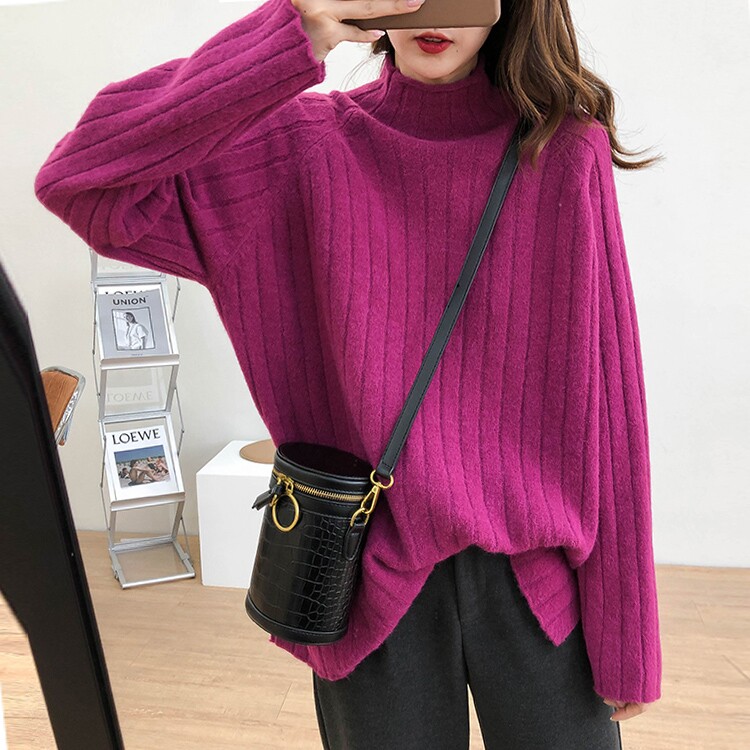 Демисезонный ретро трикотажный свитер, европейский стиль, высокий воротник, свободный крой