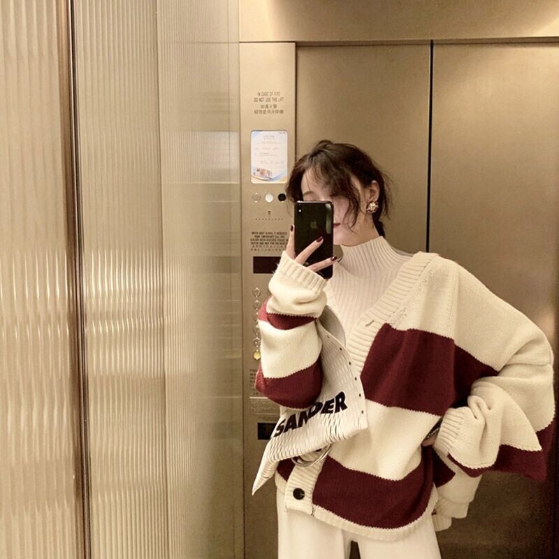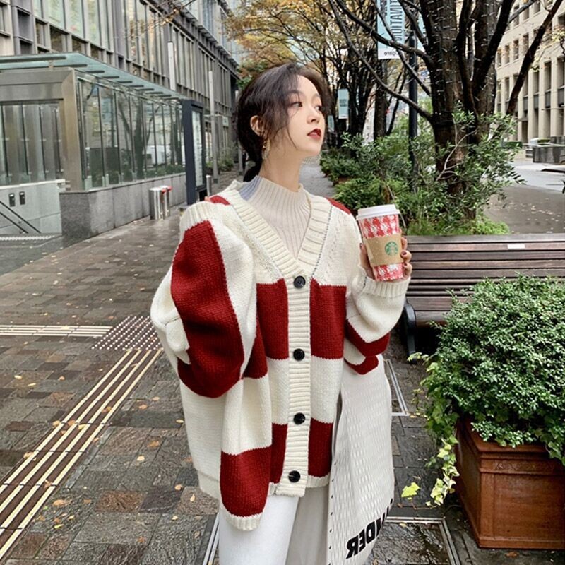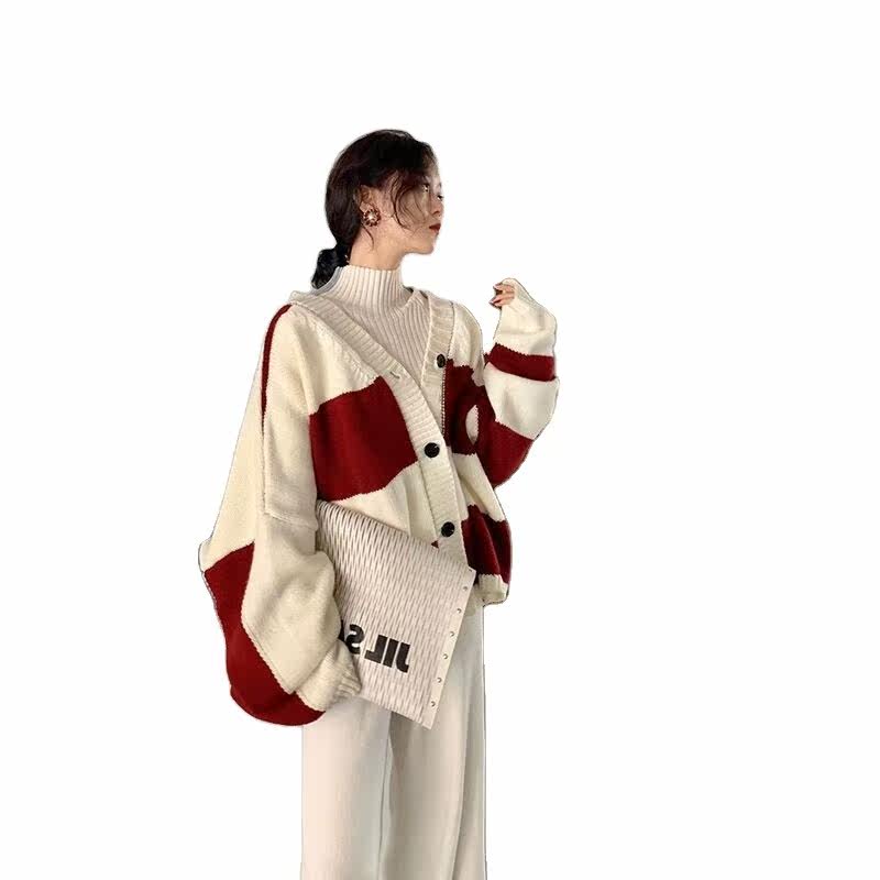 Осенний трикотажный свитер, рубашка, кардиган, куртка, европейский стиль, коллекция 2021, V-образный вырез