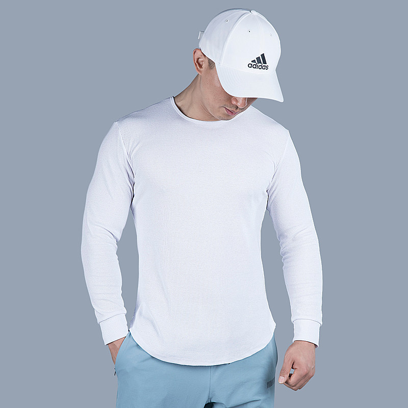 Лонгслив для спортзала с круглым воротником, ретро футболка, трикотажный свитер, облегающий крой