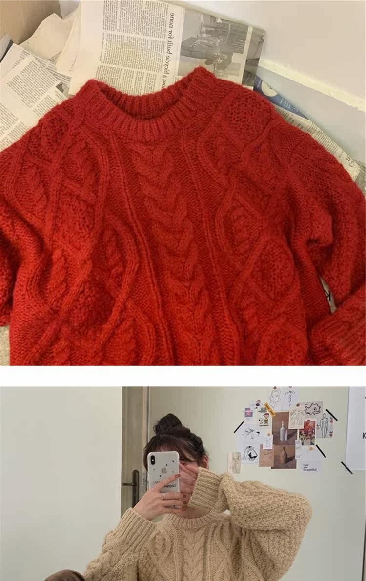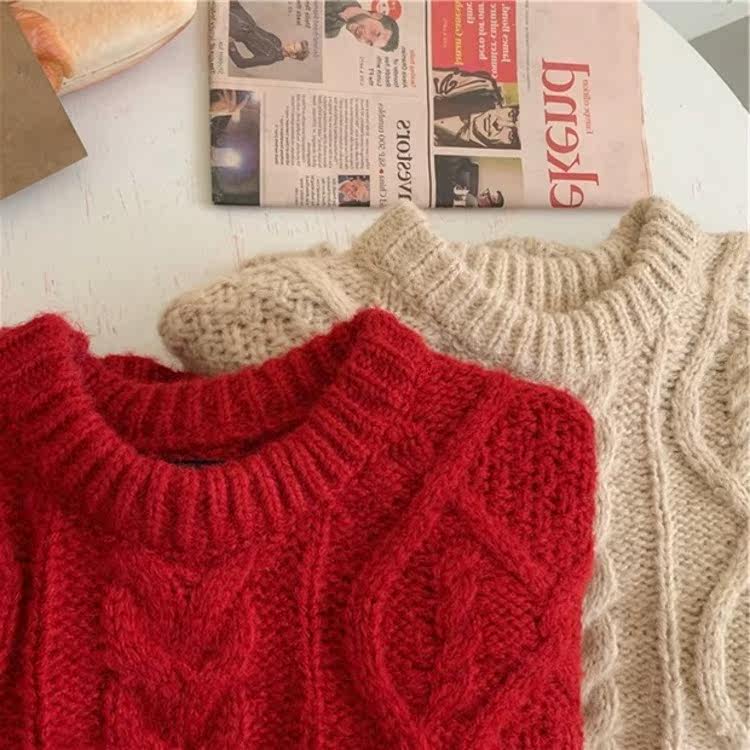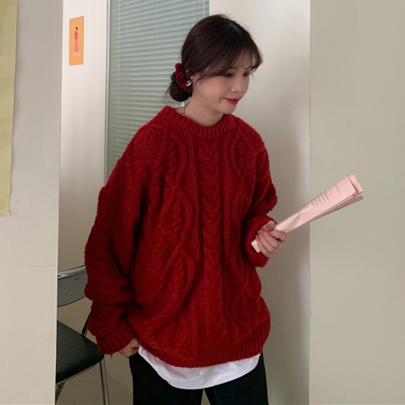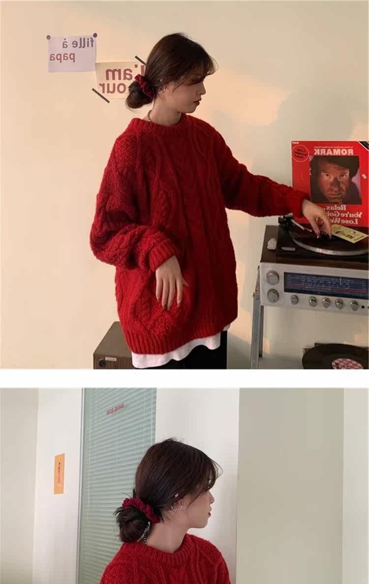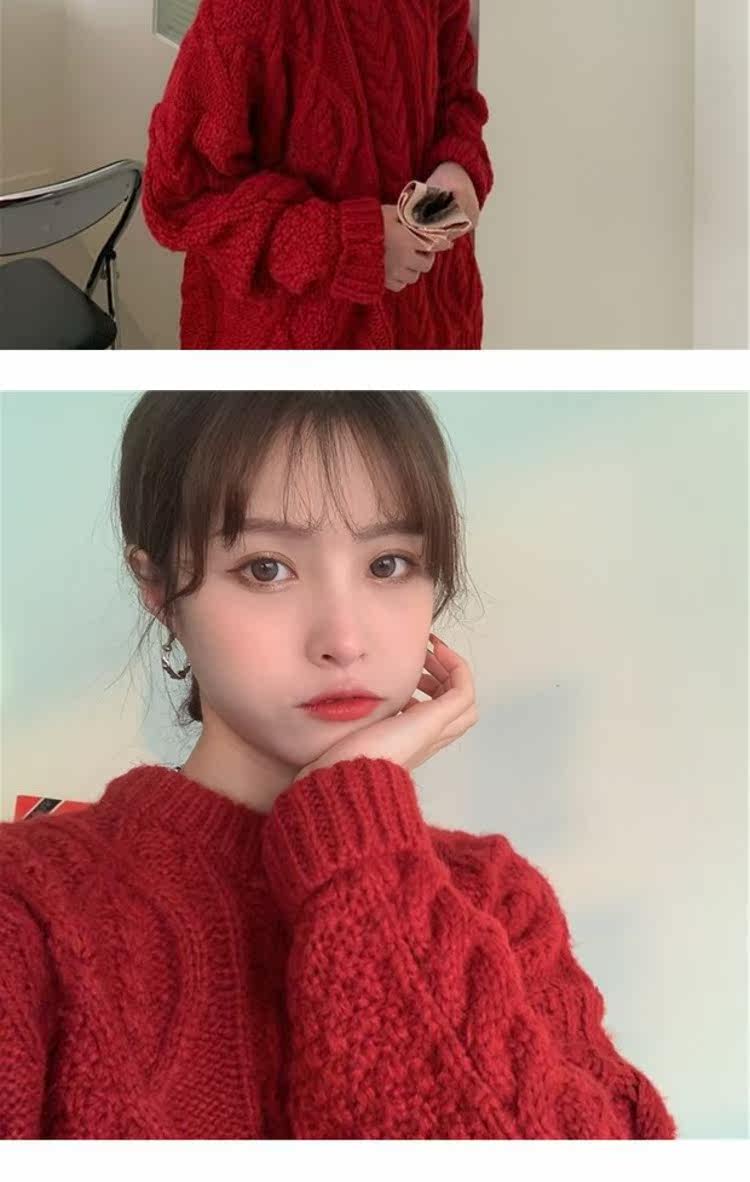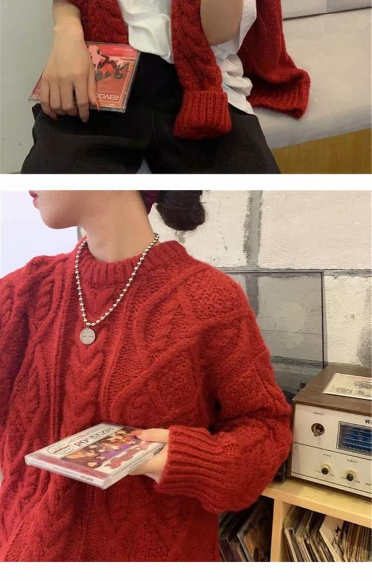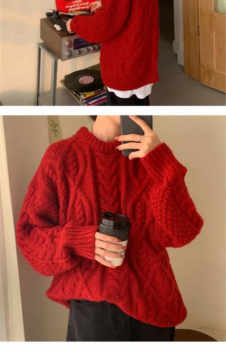 Красный демисезонный свитер, европейский стиль, в корейском стиле