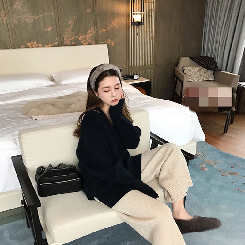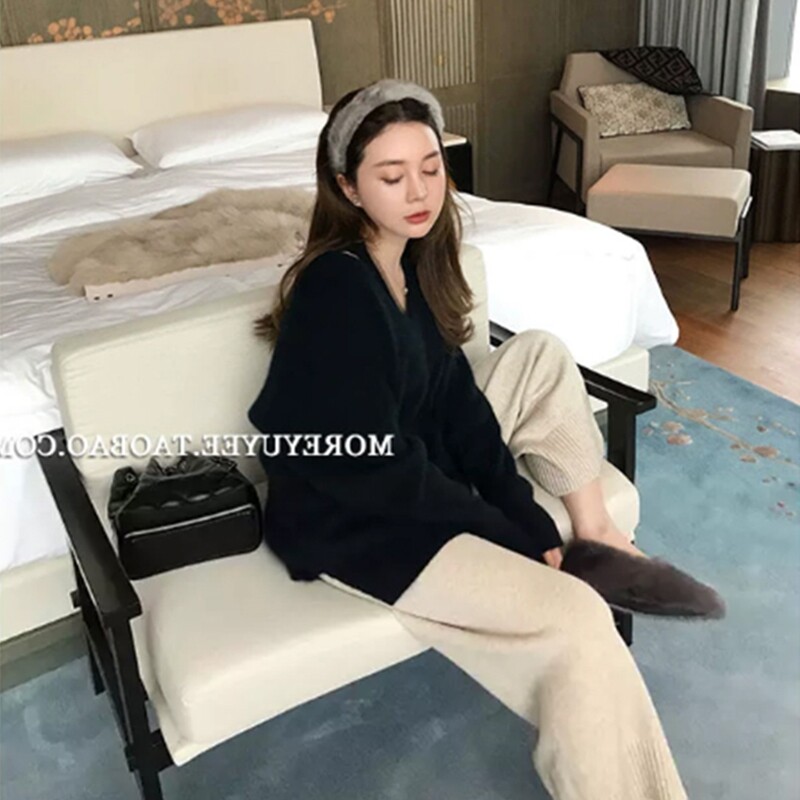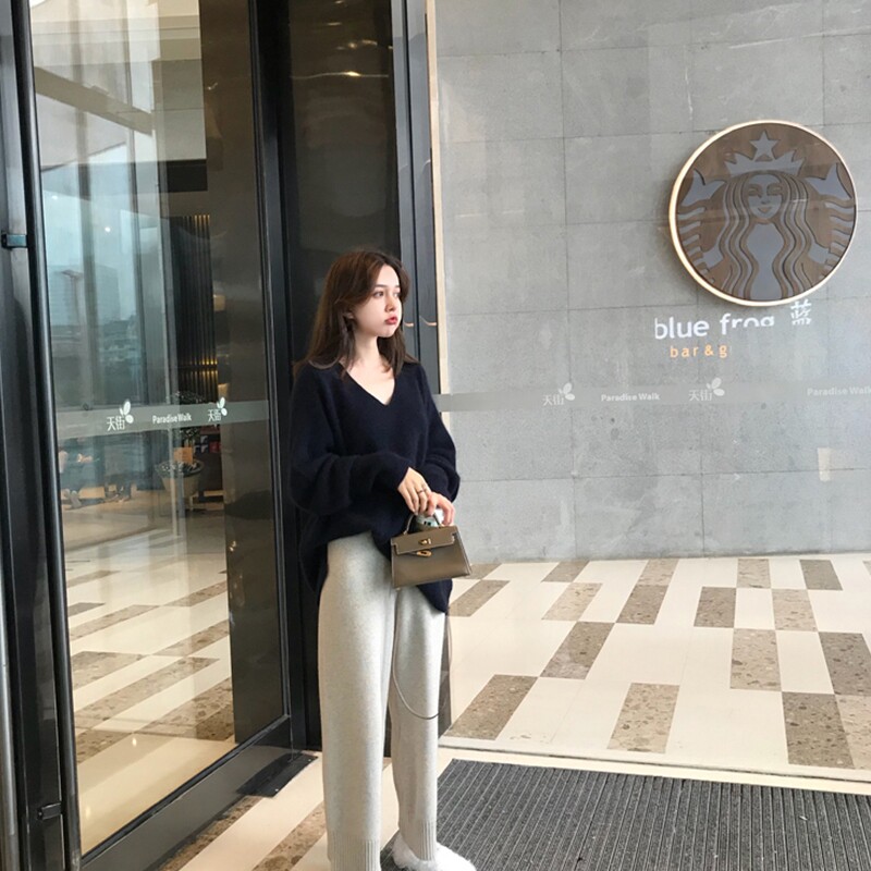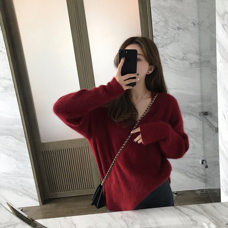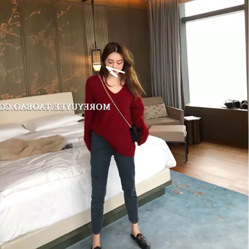 Ретро японский базовый демисезонный свитер, европейский стиль, оверсайз, V-образный вырез