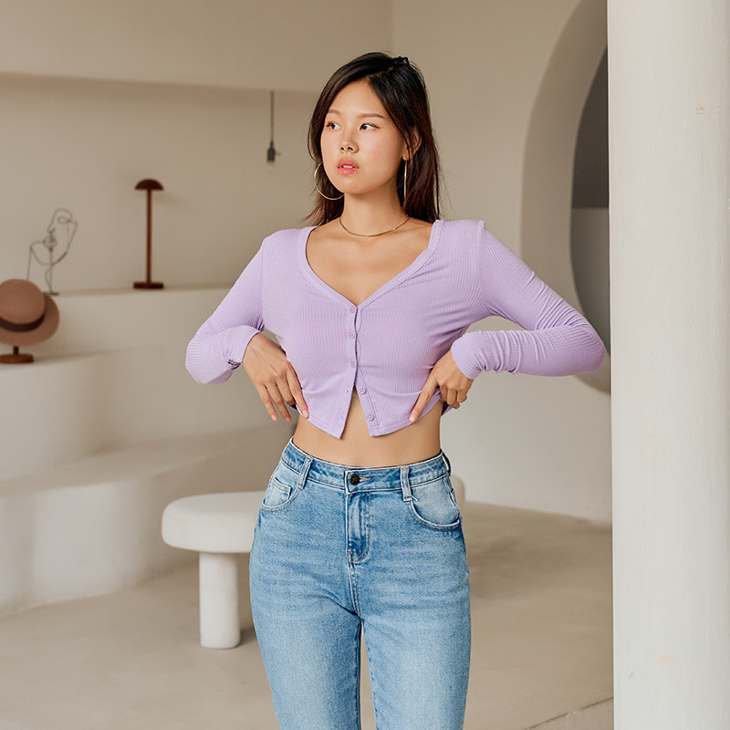 AlphaGym Эластичный лонгслив, тонкий приталенный короткий кардиган, V-образный вырез, защита от солнца