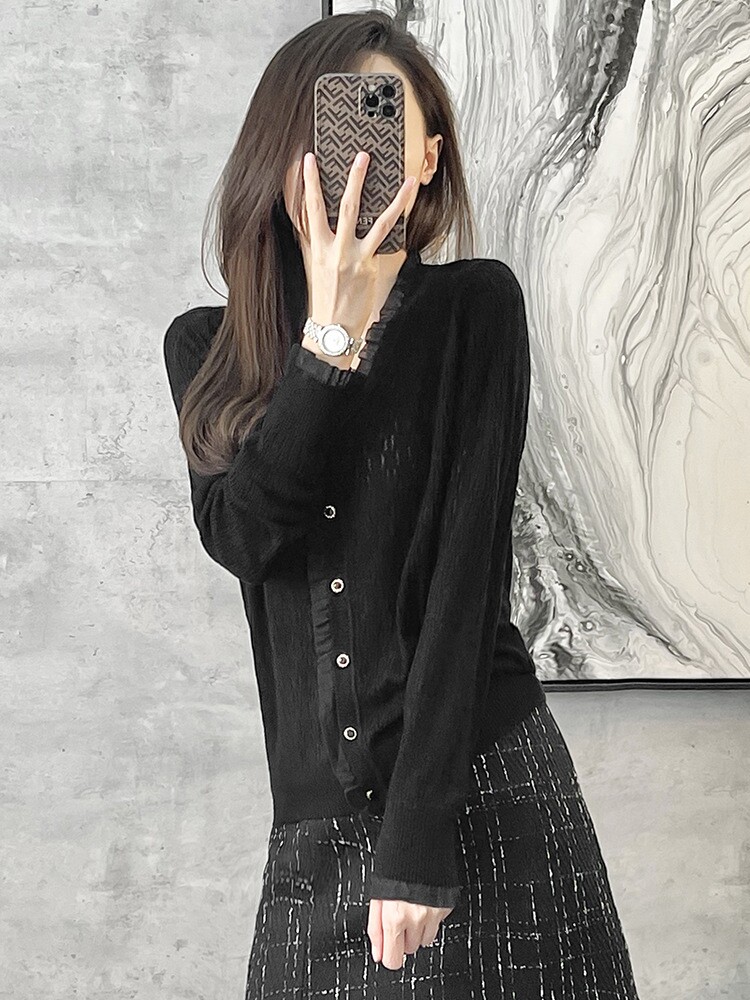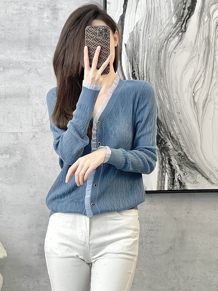 Осенний кардиган, свитер, лонгслив, куртка, европейский стиль, коллекция 2021, V-образный вырез