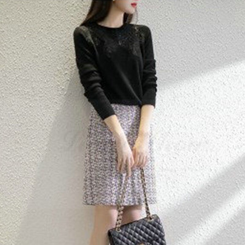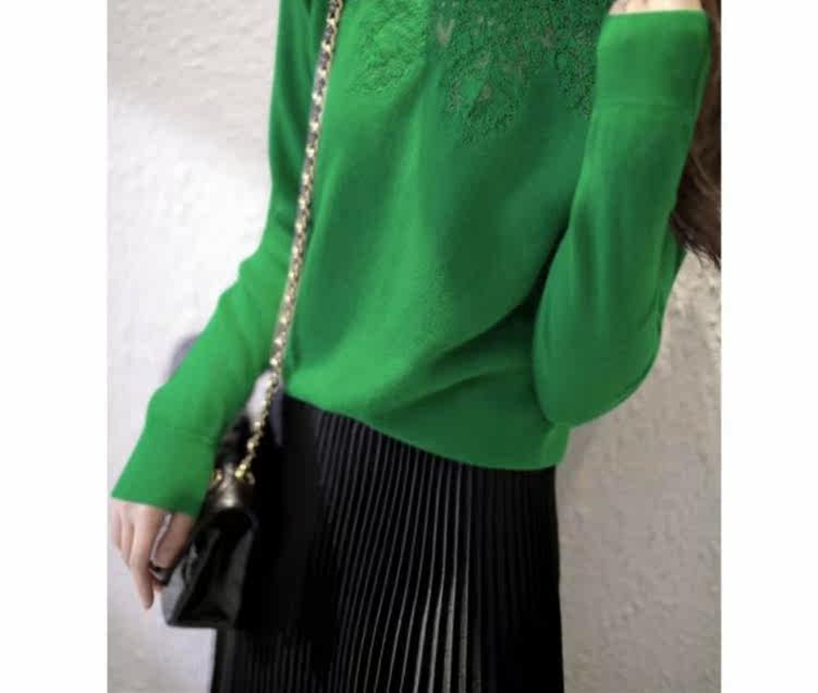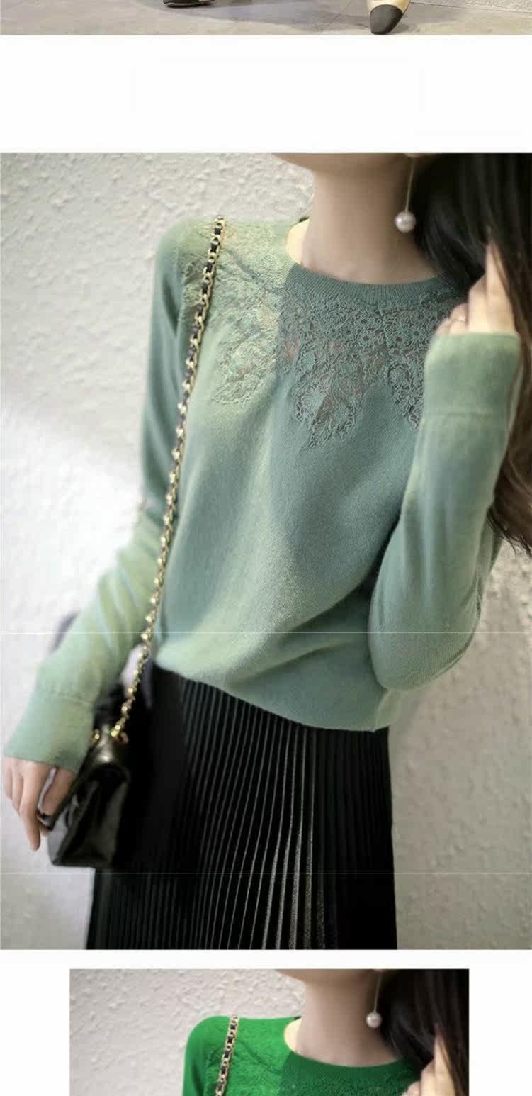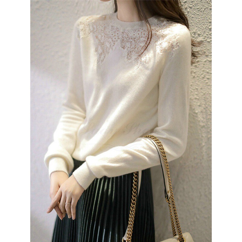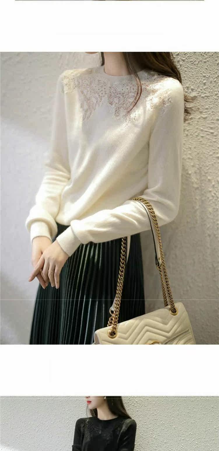 Кружевной шелковый приятный телу осенний тонкий ретро трикотажный свитер, европейский стиль, в западном стиле