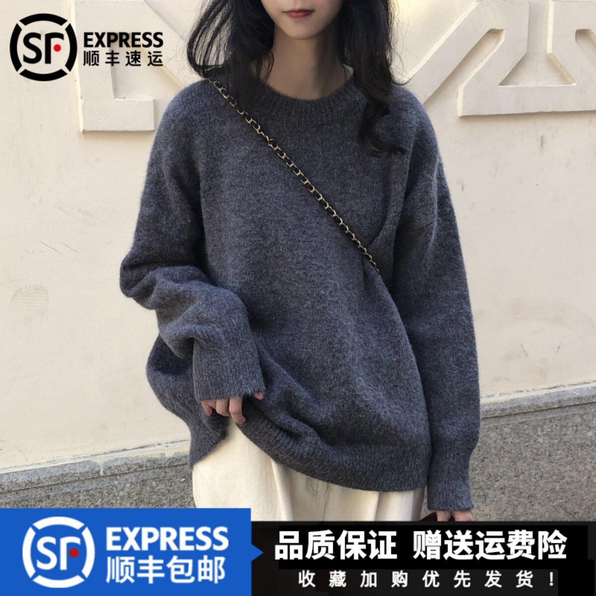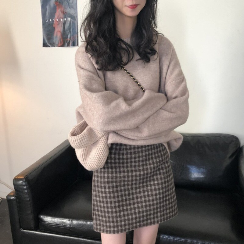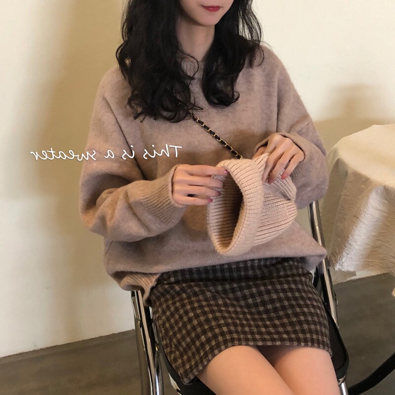 Демисезонный ретро трикотажный свитер с круглым воротником, европейский стиль, оверсайз, увеличенная толщина