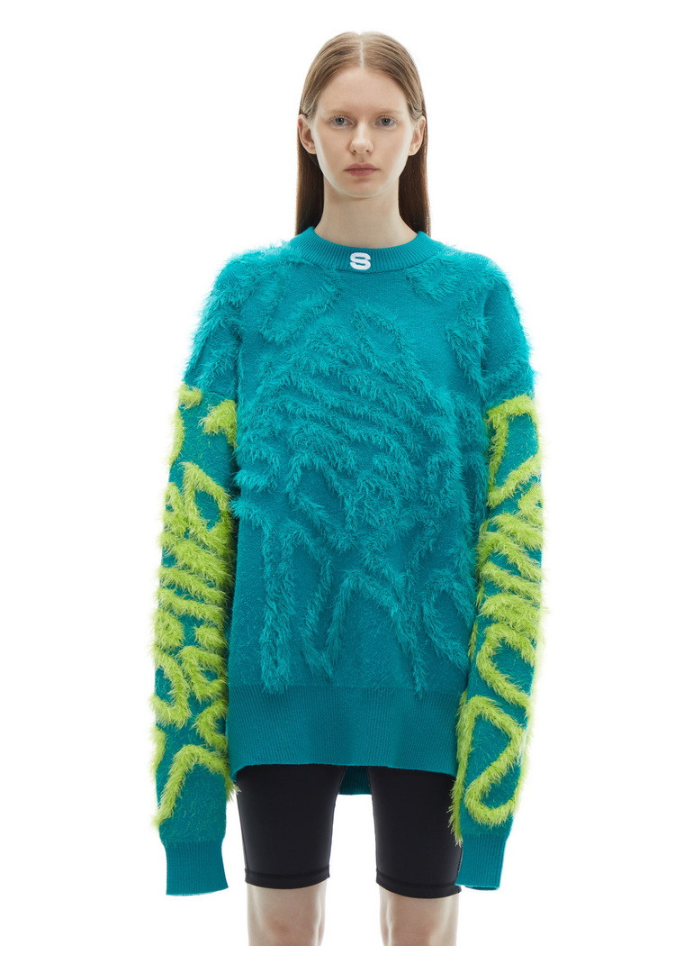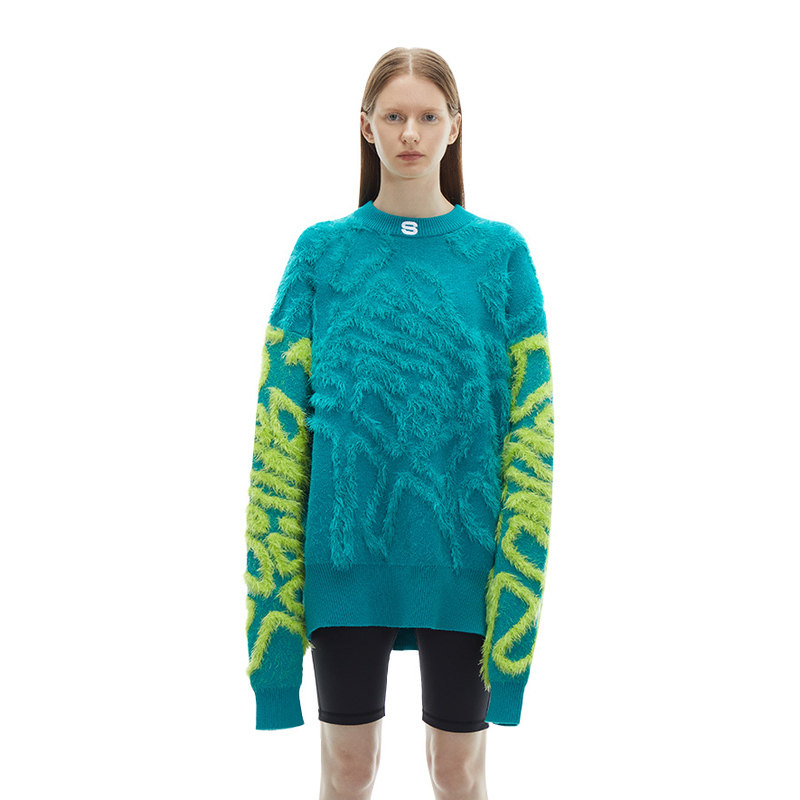 Дизайнерский трикотажный свитер с круглым воротником, рубашка, осенний, оверсайз, принт