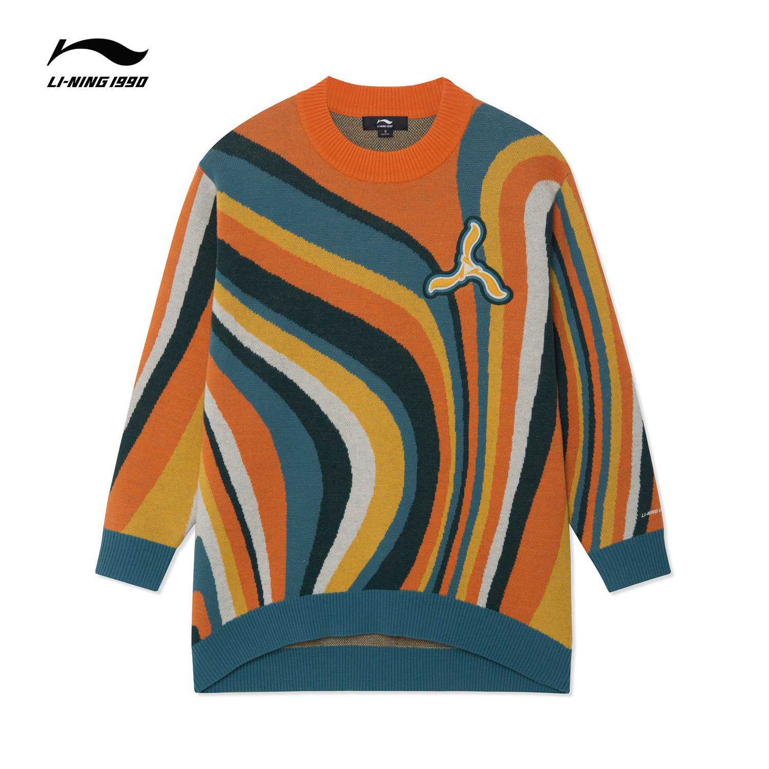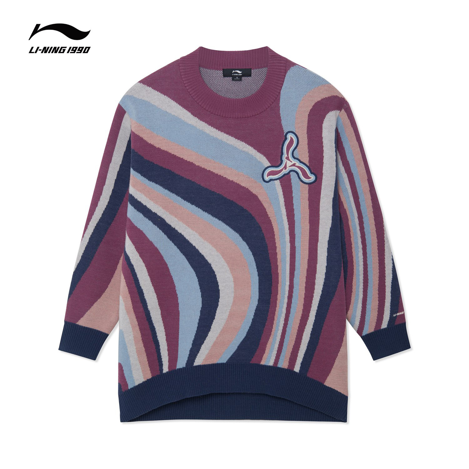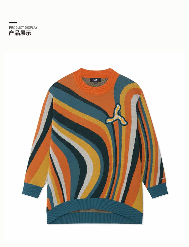 Li-REN1990 Женский ретро-ретро-контрастный короткий круглый свитер вязаный свитер Li Ning 1990 Classic Series