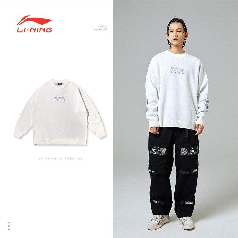 Li Ning, плетеный демисезонный модный комфортный свитер, свободный крой